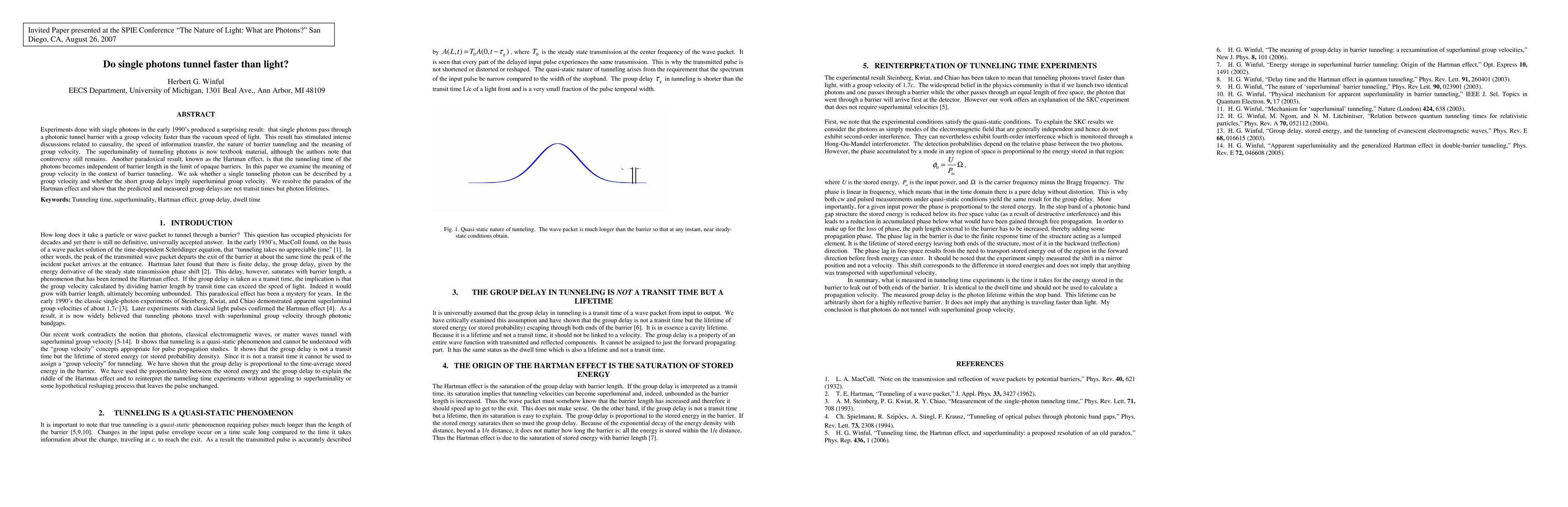 This paper demonstrates that earlier experiments suggesting single photons tunnel faster than light were misinterpreted; the observed delays are due to cavity lifetimes rather than actual transit times, resolving the Hartman paradox and confirming that photon tunneling does not exceed the speed of light.