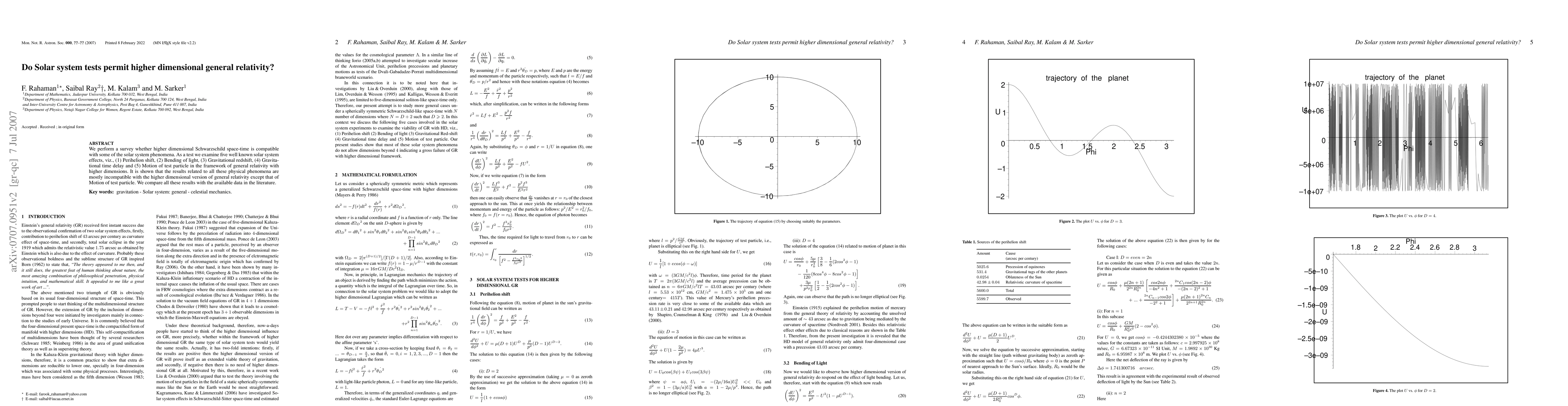 This paper investigates the compatibility of higher dimensional Schwarzschild space-time with solar system phenomena, finding that most effects like perihelion shift, light bending, gravitational redshift, and time delay are incompatible with higher-dimensional general relativity, except for the motion of a test particle.
