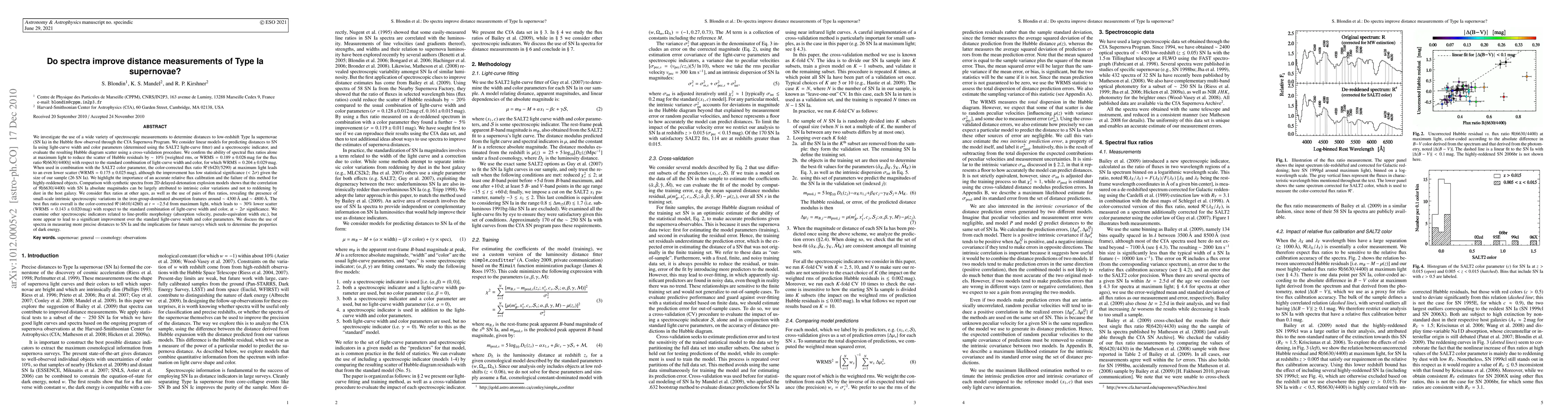 [Abridged] We investigate the use of a wide variety of spectroscopic measurements to determine distances to low-redshift Type Ia supernovae (SN Ia). We consider linear models for predicting distances to SN Ia using light-curve width and color parameters (determined using the SALT2 light-curve fitter) and a spectroscopic indicator, and evaluate the resulting Hubble diagram scatter using a cross-validation procedure. We confirm the ability of spectral flux ratios alone at maximum light to reduce the scatter of Hubble residuals by ~10% with respect to the standard combination of light-curve width and color. When used in combination with the SALT2 color parameter, the color-corrected flux ratio R^c(6420/5290) at maximum light leads to an even lower scatter, although the improvement has low statistical significance (<2 sigma) given the size of our sample (26 SN Ia). We highlight the importance of an accurate relative flux calibration and the failure of this method for highly-reddened objects. Comparison with synthetic spectra from 2D delayed-detonation explosion models shows that the correlation of R(6630/4400) with SN Ia absolute magnitudes can be largely attributed to intrinsic color variations and not to reddening by dust in the host galaxy. We consider flux ratios at other ages, as well as the use of pairs of flux ratios, revealing the presence of small-scale intrinsic spectroscopic variations in the iron-group dominated absorption features around ~4300 A and ~4800 A. The best flux ratio overall is the color-corrected R^c(4610/4260) at t=-2.5d from maximum light, which leads to ~30% lower scatter with respect to the standard combination of light-curve width and color. We examine other spectroscopic indicators related to line-profile morphology, but none appear to lead to a significant improvement over the standard light-curve width and color parameters.