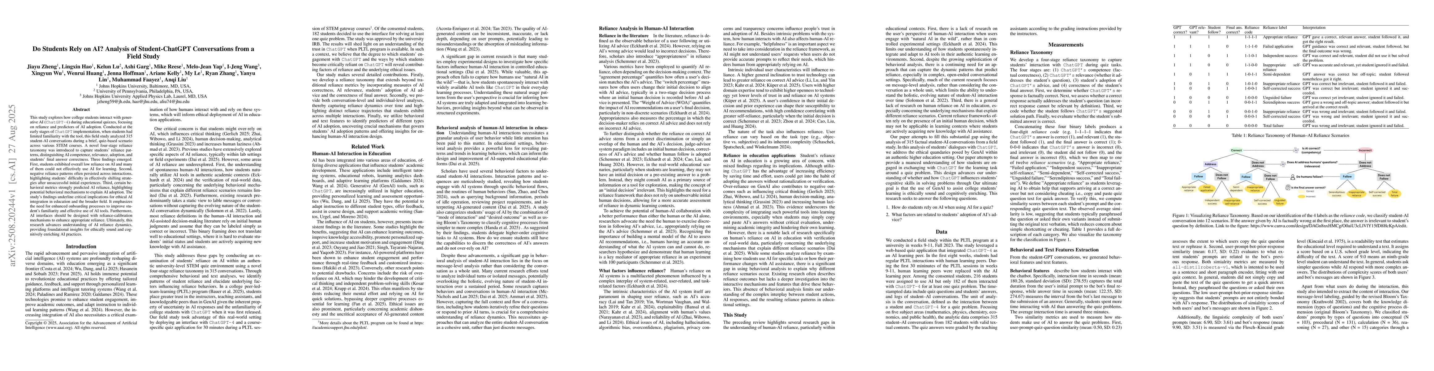 This study explores how college students interact with generative AI (ChatGPT-4) during educational quizzes, focusing on reliance and predictors of AI adoption. Conducted at the early stages of ChatGPT implementation, when students had limited familiarity with the tool, this field study analyzed 315 student-AI conversations during a brief, quiz-based scenario across various STEM courses. A novel four-stage reliance taxonomy was introduced to capture students' reliance patterns, distinguishing AI competence, relevance, adoption, and students' final answer correctness. Three findings emerged. First, students exhibited overall low reliance on AI and many of them could not effectively use AI for learning. Second, negative reliance patterns often persisted across interactions, highlighting students' difficulty in effectively shifting strategies after unsuccessful initial experiences. Third, certain behavioral metrics strongly predicted AI reliance, highlighting potential behavioral mechanisms to explain AI adoption. The study's findings underline critical implications for ethical AI integration in education and the broader field. It emphasizes the need for enhanced onboarding processes to improve student's familiarity and effective use of AI tools. Furthermore, AI interfaces should be designed with reliance-calibration mechanisms to enhance appropriate reliance. Ultimately, this research advances understanding of AI reliance dynamics, providing foundational insights for ethically sound and cognitively enriching AI practices.