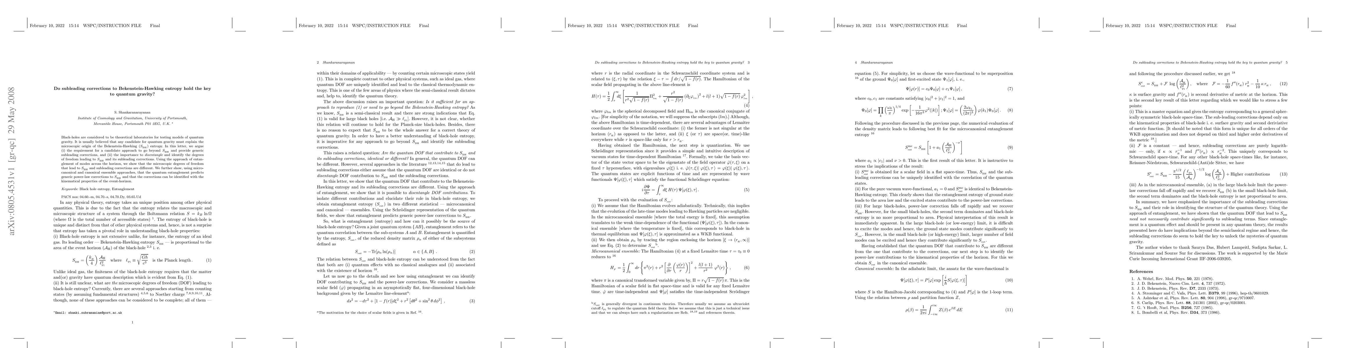 This paper argues that subleading corrections to the Bekenstein-Hawking entropy are crucial for understanding quantum gravity, as they reveal different microscopic degrees of freedom than the leading term. It proposes that quantum entanglement predicts these corrections, which can be linked to the event-horizon's kinematical properties.