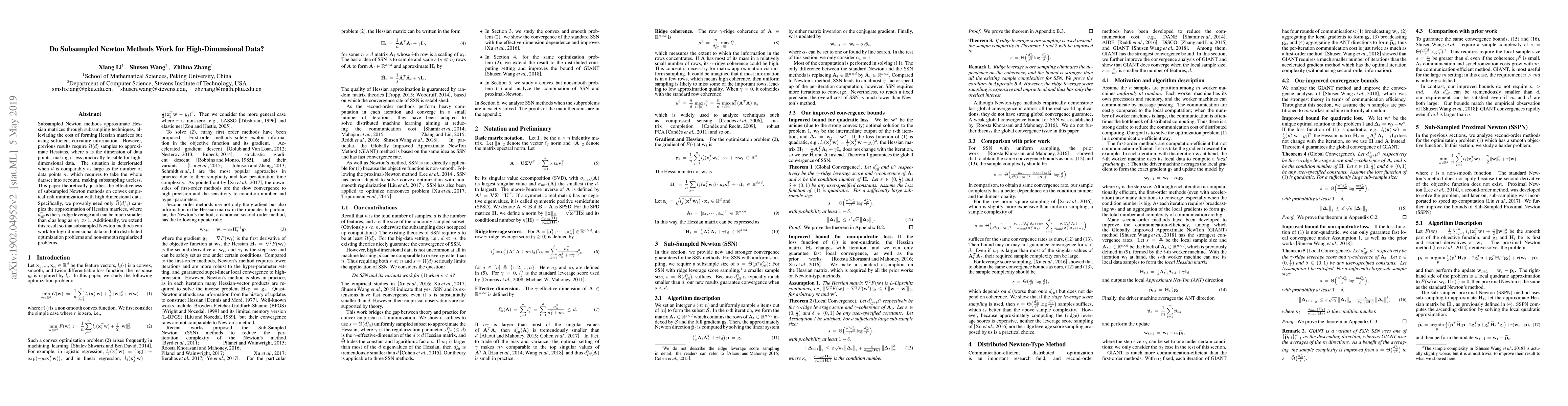 This paper theoretically justifies the effectiveness of subsampled Newton methods for high-dimensional data, proving that only $\widetilde{\Theta}(d^\gamma_{\rm eff})$ samples are needed for Hessian approximation, where $d^\gamma_{\rm eff}$ is much smaller than the data dimension $d$ when $n\gamma \gg 1$. This extends the applicability of subsampled Newton methods to distributed and non-smooth regularized optimization problems.