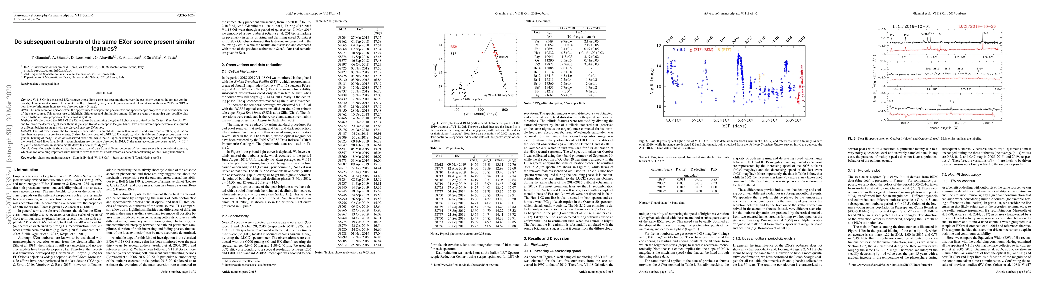 This study compares the photometric and spectroscopic properties of three outbursts of the EXor source V1118 Ori, finding similarities in amplitude and duration but differences in rise speed and color evolution over time. The analysis highlights the complexity of comparing outbursts and provides valuable insights for theoretical models of EXor phenomena.