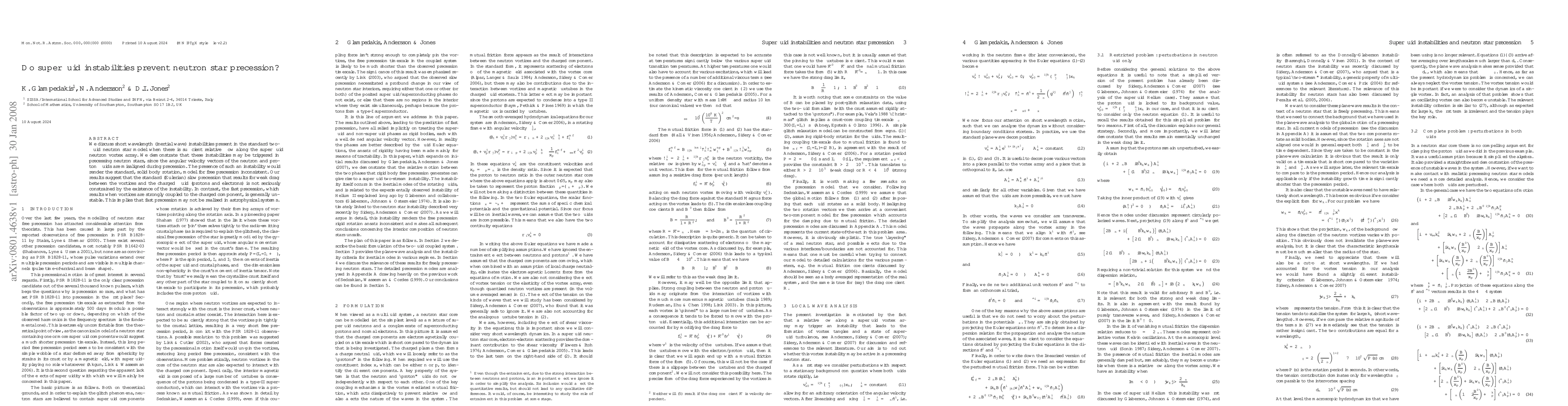 We discuss short wavelength (inertial wave) instabilities present in the standard two-fluid neutron star model when there is sufficient relative flow along the superfluid neutron vortex array. We demonstrate that these instabilities may be triggered in precessing neutron stars, since the angular velocity vectors of the neutron and proton fluids are misaligned during precession. The presence of such an instability would render the standard, solid body rotation, model for free precession inconsistent. Our results suggest that the standard (Eulerian) slow precession that results for weak drag between the vortices and the charged fluid (protons and electrons) is not seriously constrained by the existence of the instability. In contrast, the fast precession, which results when vortices are strongly coupled to the charged component, is generally unstable. This implies that fast precession may not be realised in astrophysical systems
