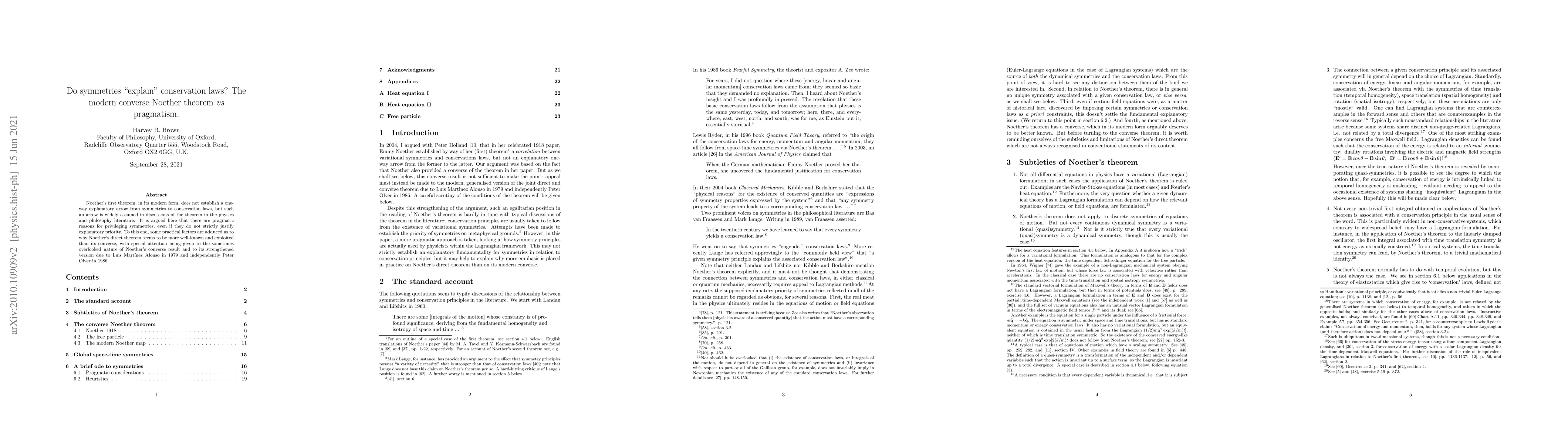 Noether's first theorem does not establish a one-way explanatory arrow from symmetries to conservation laws, but such an arrow is widely assumed in discussions of the theorem in the physics and philosophy literature. It is argued here that there are pragmatic reasons for privileging symmetries, even if they do not strictly justify explanatory priority. To this end, some practical factors are adduced as to why Noether's direct theorem seems to be more well-known and exploited than its converse, with special attention being given to the sometimes overlooked nature of Noether's converse result and to its strengthened version due to Luis Mart\'inez Alonso in 1979 and Peter Olver in 1986.