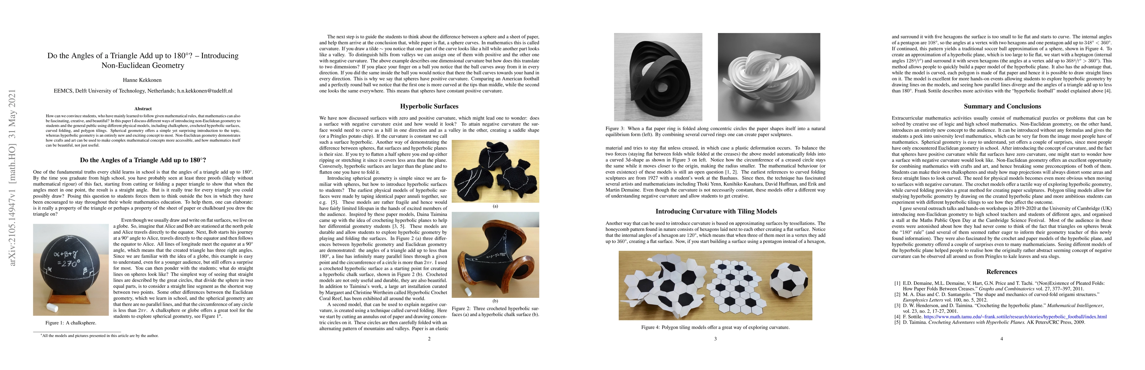 How can we convince students, who have mainly learned to follow given mathematical rules, that mathematics can also be fascinating, creative, and beautiful? In this paper I discuss different ways of introducing non-Euclidean geometry to students and the general public using different physical models, including chalksphere, crocheted hyperbolic surfaces, curved folding, and polygon tilings. Spherical geometry offers a simple yet surprising introduction to the topic, whereas hyperbolic geometry is an entirely new and exciting concept to most. Non-Euclidean geometry demonstrates how crafts and art can be used to make complex mathematical concepts more accessible, and how mathematics itself can be beautiful, not just useful.