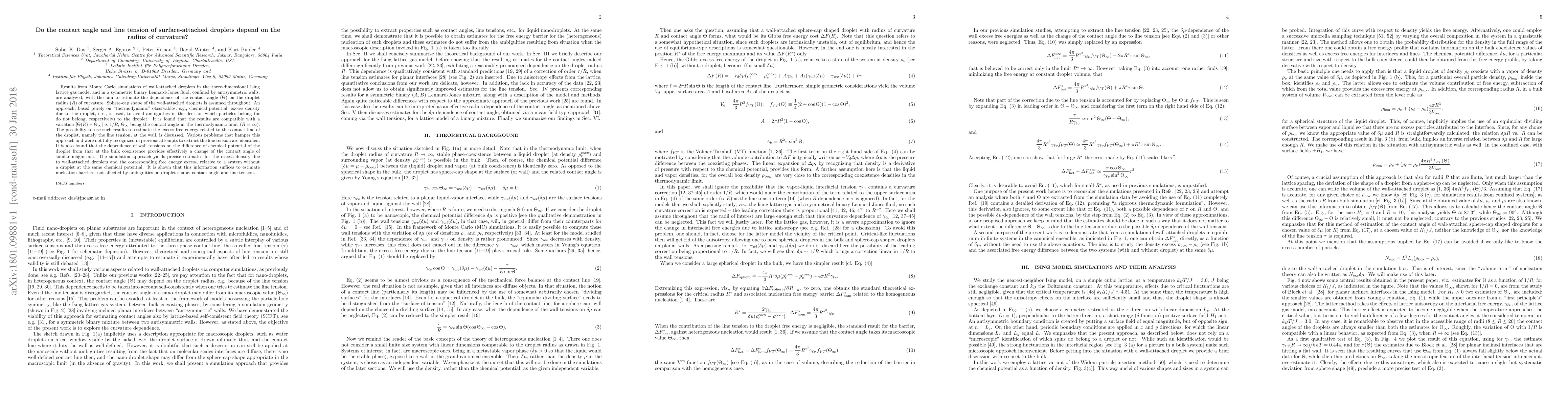 Monte Carlo simulations reveal that the contact angle of wall-attached droplets varies inversely with droplet radius, following a $1/R$ relationship. The study also explores the implications for estimating line tension and identifies challenges in previous attempts to accurately extract such thermodynamic properties.