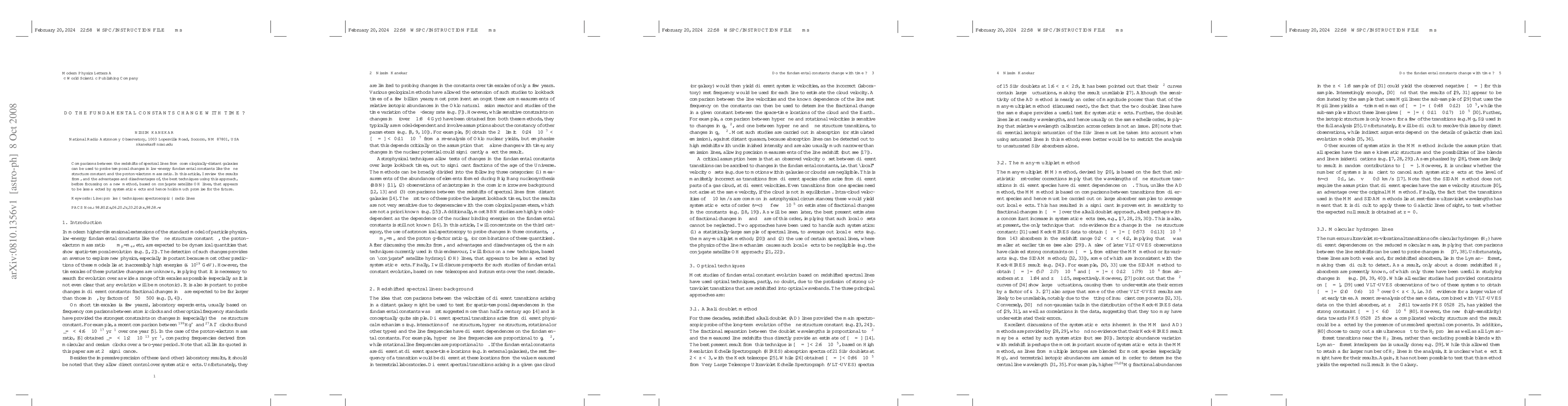 This paper reviews techniques to detect temporal changes in fundamental constants, highlighting a new method using satellite OH lines that shows promise due to reduced systematic effects. The study focuses on comparing redshifts from distant galaxies to investigate variations in the fine structure constant and proton-electron mass ratio.