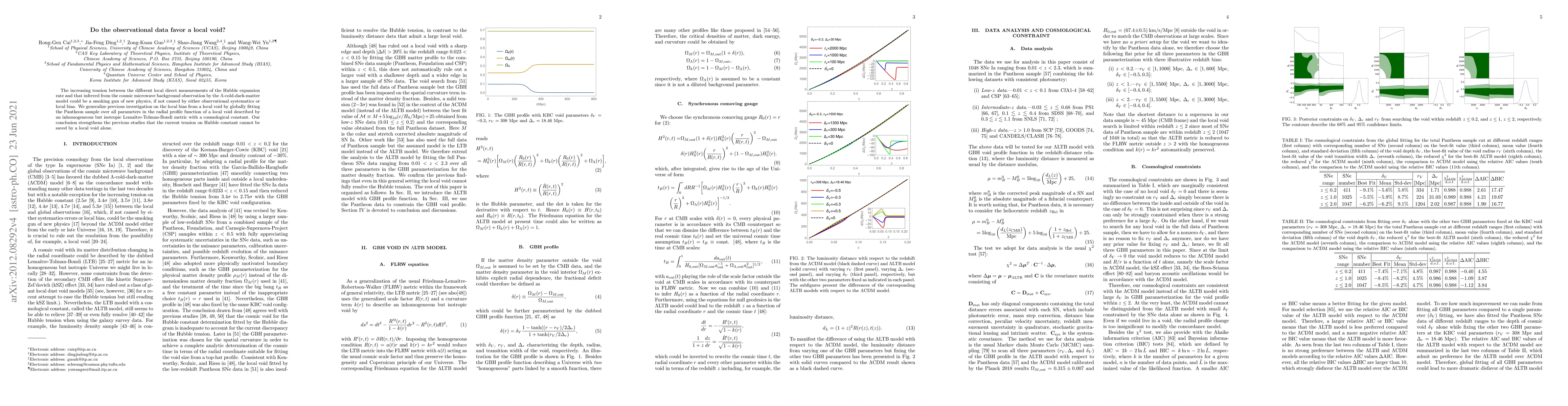 The paper investigates whether observational data support the existence of a local void to explain discrepancies in Hubble expansion rate measurements. It concludes that a local void cannot resolve the tension between local and CMB-based measurements of the Hubble constant.
