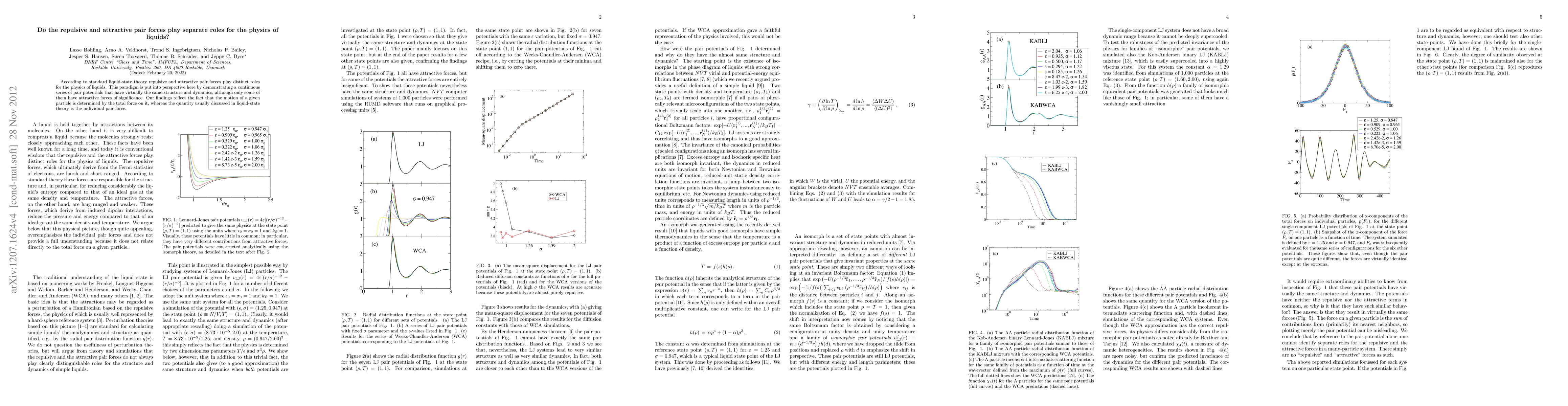 This paper challenges the conventional view that repulsive and attractive pair forces have distinct roles in liquid physics, showing that a continuous series of pair potentials with similar structures and dynamics can exist, regardless of the significance of attractive forces. The study emphasizes that particle motion is determined by the total force acting on it, not just individual pair forces.