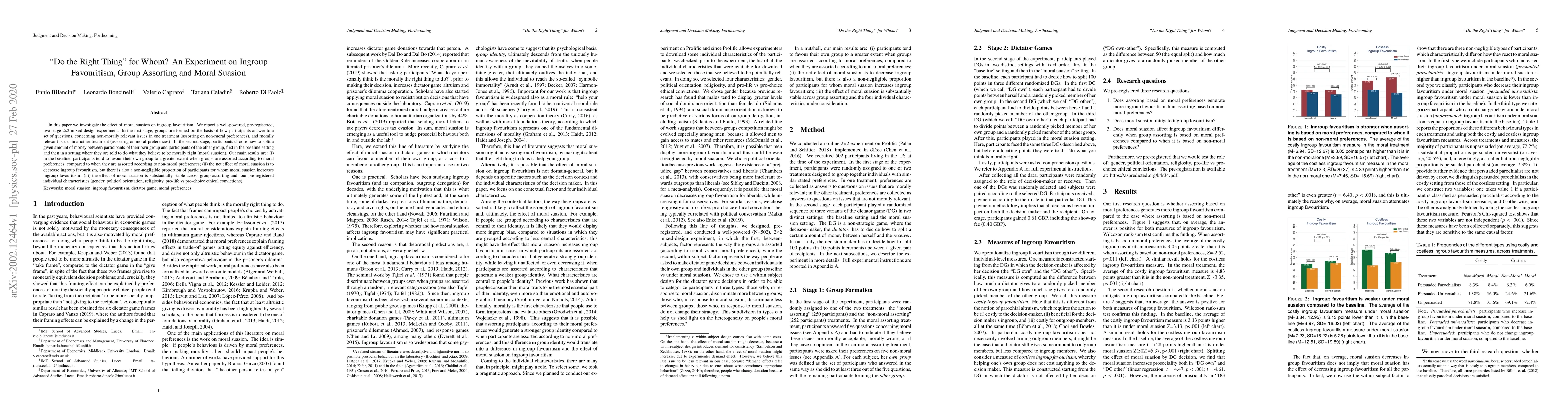 This study explores how moral suasion influences ingroup favoritism through a two-stage experiment. It finds that groups formed based on moral preferences exhibit greater initial favoritism, and while moral suasion generally reduces favoritism, it paradoxically increases it for some participants. The effect of moral suasion remains consistent across different group formations and individual characteristics.