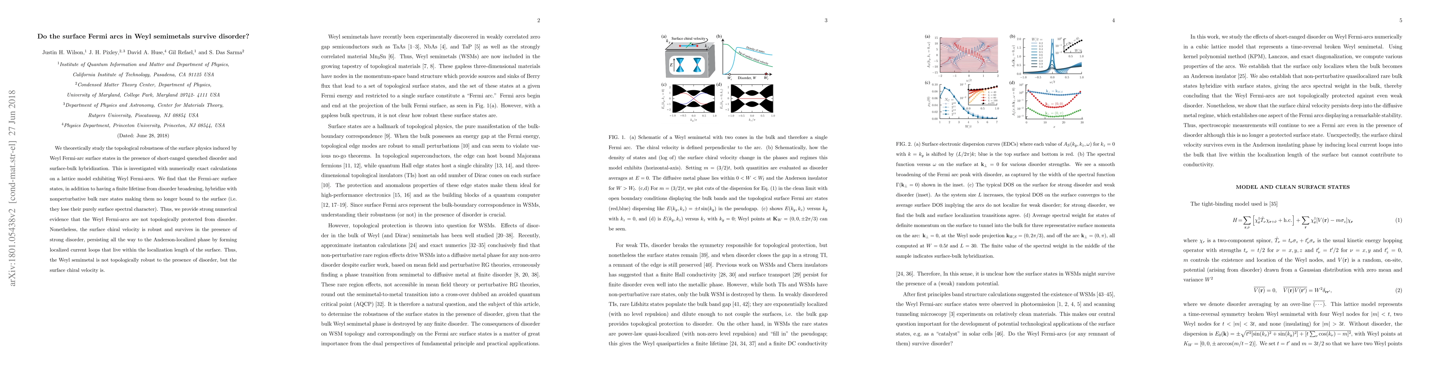 We theoretically study the topological robustness of the surface physics induced by Weyl Fermi-arc surface states in the presence of short-ranged quenched disorder and surface-bulk hybridization. This is investigated with numerically exact calculations on a lattice model exhibiting Weyl Fermi-arcs. We find that the Fermi-arc surface states, in addition to having a finite lifetime from disorder broadening, hybridize with nonperturbative bulk rare states making them no longer bound to the surface (i.e. they lose their purely surface spectral character). Thus, we provide strong numerical evidence that the Weyl Fermi-arcs are not topologically protected from disorder. Nonetheless, the surface chiral velocity is robust and survives in the presence of strong disorder, persisting all the way to the Anderson-localized phase by forming localized current loops that live within the localization length of the surface. Thus, the Weyl semimetal is not topologically robust to the presence of disorder, but the surface chiral velocity is.