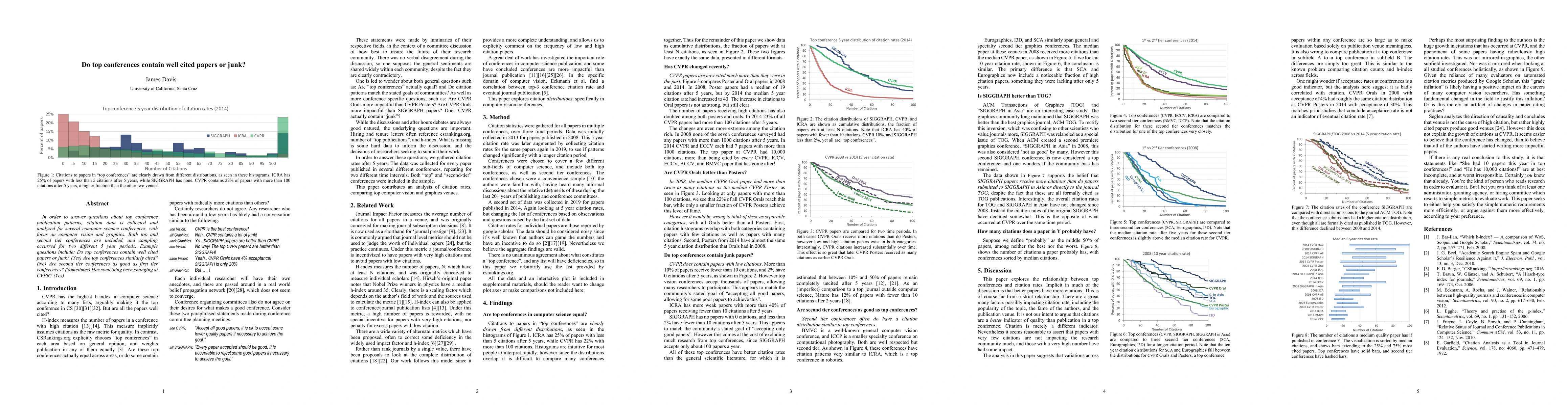 Research analyzed citation data from top computer science conferences to determine if they contain well-cited papers or lower-quality work. The study found that top conferences do not receive equally cited papers as those in second-tier conferences.