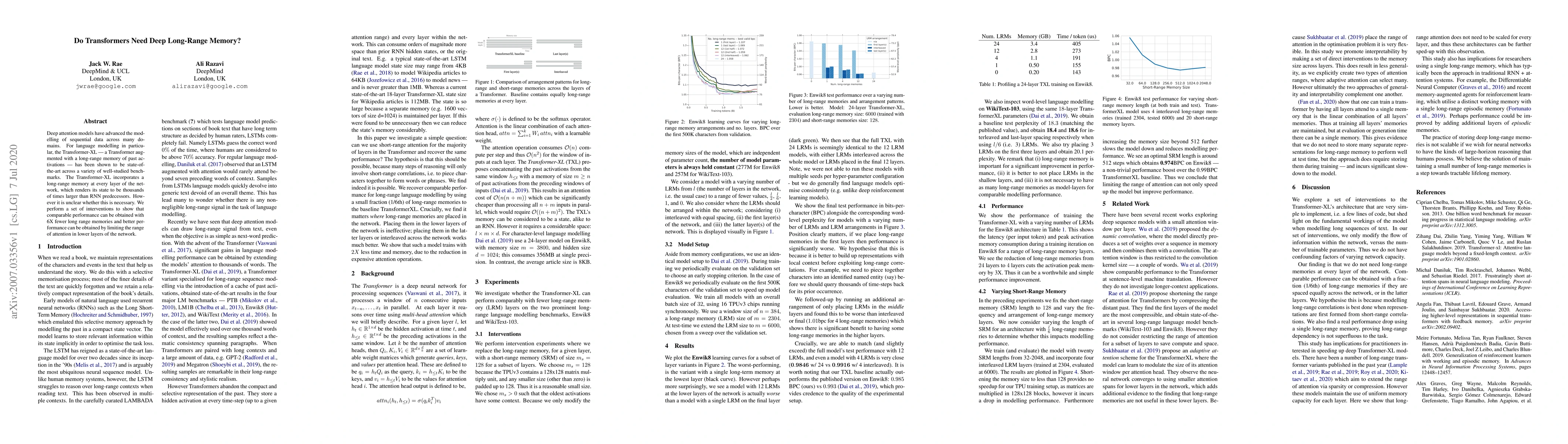 Researchers found that limiting long-range memory and attention in lower layers of Transformers can achieve comparable performance with significantly fewer parameters. This challenges the need for deep long-range memory in state-of-the-art Transformer models.