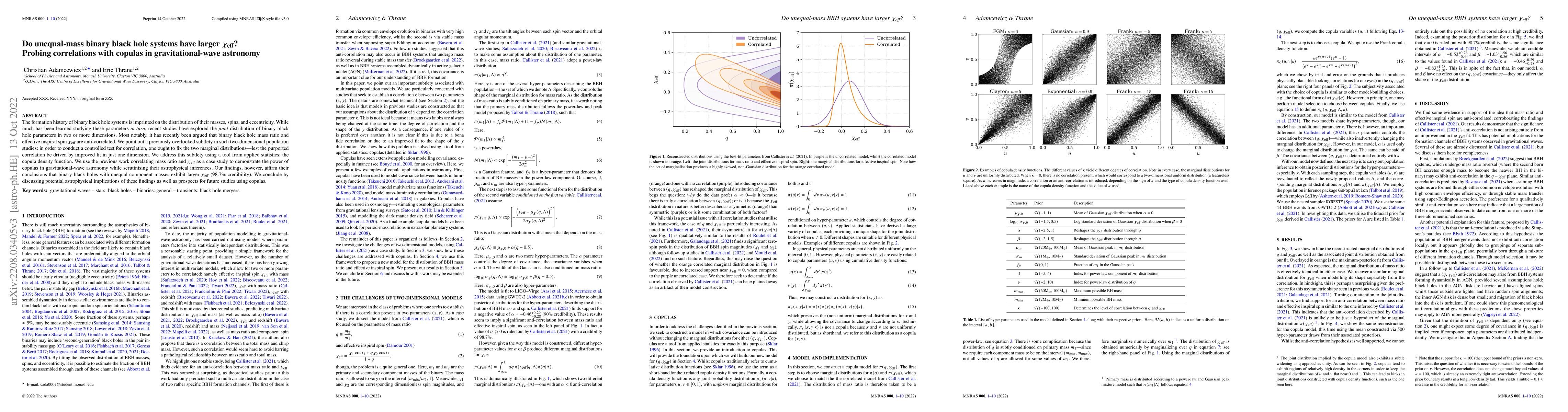 The formation history of binary black hole systems is imprinted on the distribution of their masses, spins, and eccentricity. While much has been learned studying these parameters in turn, recent studies have explored the joint distribution of binary black hole parameters in two or more dimensions. Most notably, it has recently been argued that binary black hole mass ratio and effective inspiral spin $\chi_\text{eff}$ are anti-correlated. We point out a previously overlooked subtlety in such two-dimensional population studies: in order to conduct a controlled test for correlation, one ought to fix the two marginal distributions -- lest the purported correlation be driven by improved fit in just one dimension. We address this subtlety using a tool from applied statistics: the copula density function. We use the previous work correlating mass ratio and $\chi_\text{eff}$ as a case study to demonstrate the power of copulas in gravitational-wave astronomy while scrutinising their astrophysical inferences. Our findings, however, affirm their conclusions that binary black holes with unequal component masses exhibit larger $\chi_\text{eff}$ (98.7% credibility). We conclude by discussing potential astrophysical implications of these findings as well as prospects for future studies using copulas.
