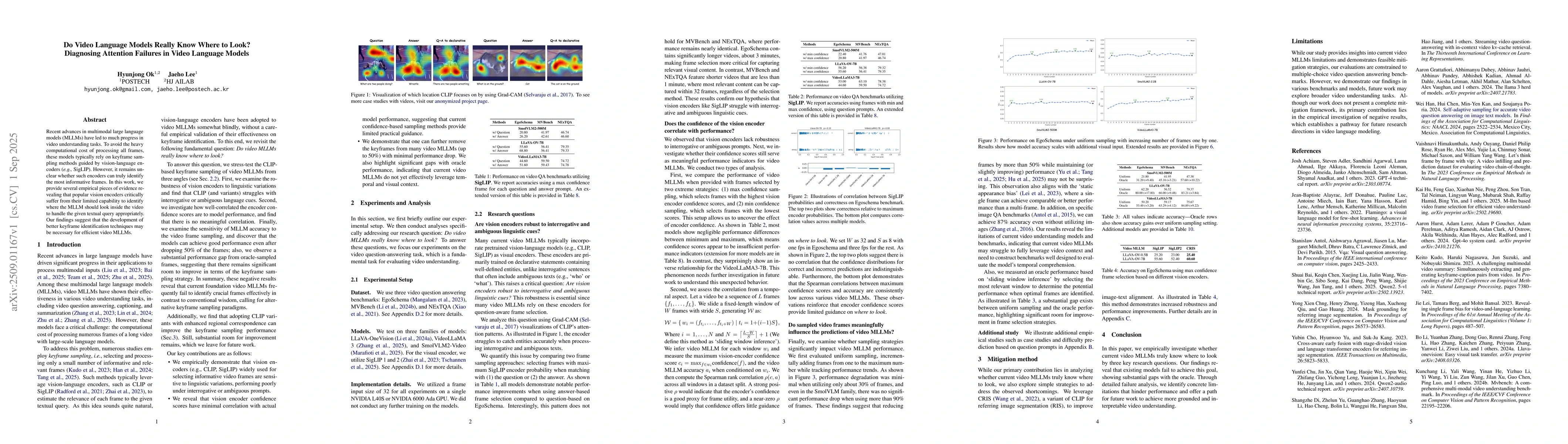 Recent advances in multimodal large language models (MLLMs) have led to much progress in video understanding tasks. To avoid the heavy computational cost of processing all frames, these models typically rely on keyframe sampling methods guided by vision-language encoders (\textit{e.g.,} SigLIP). However, it remains unclear whether such encoders can truly identify the most informative frames. In this work, we provide several empirical pieces of evidence revealing that popular vision encoders critically suffer from their limited capability to identify where the MLLM should look inside the video to handle the given textual query appropriately. Our findings suggest that the development of better keyframe identification techniques may be necessary for efficient video MLLMs.