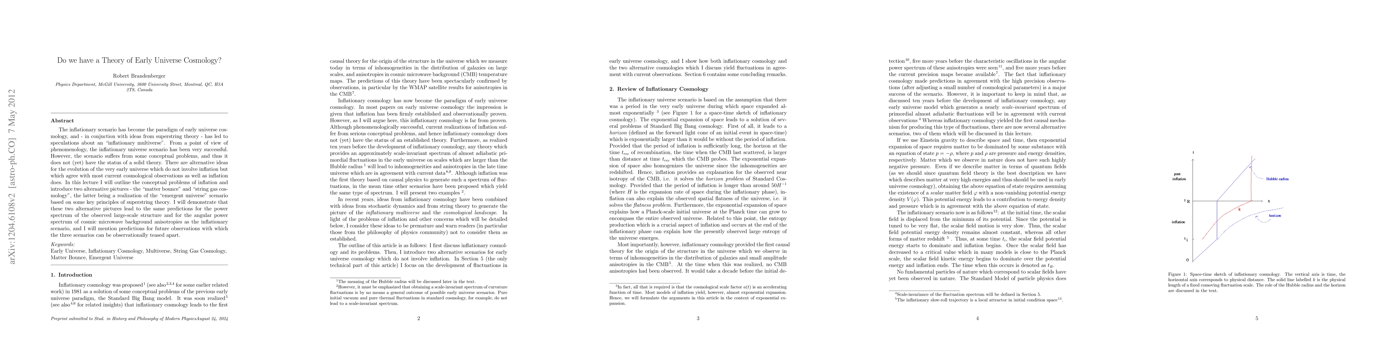 The inflationary scenario has become the paradigm of early universe cosmology, and - in conjuction with ideas from superstring theory - has led to speculations about an "inflationary multiverse". From a point of view of phenomenology, the inflationary universe scenario has been very successful. However, the scenario suffers from some conceptual problems, and thus it does not (yet) have the status of a solid theory. There are alternative ideas for the evolution of the very early universe which do not involve inflation but which agree with most current cosmological observations as well as inflation does. In this lecture I will outline the conceptual problems of inflation and introduce two alternative pictures - the "matter bounce" and "string gas cosmology", the latter being a realization of the "emergent universe" scenario based on some key principles of superstring theory. I will demonstrate that these two alternative pictures lead to the same predictions for the power spectrum of the observed large-scale structure and for the angular power spectrum of cosmic microwave background anisotropies as the inflationary scenario, and I will mention predictions for future observations with which the three scenarios can be observationally teased apart.