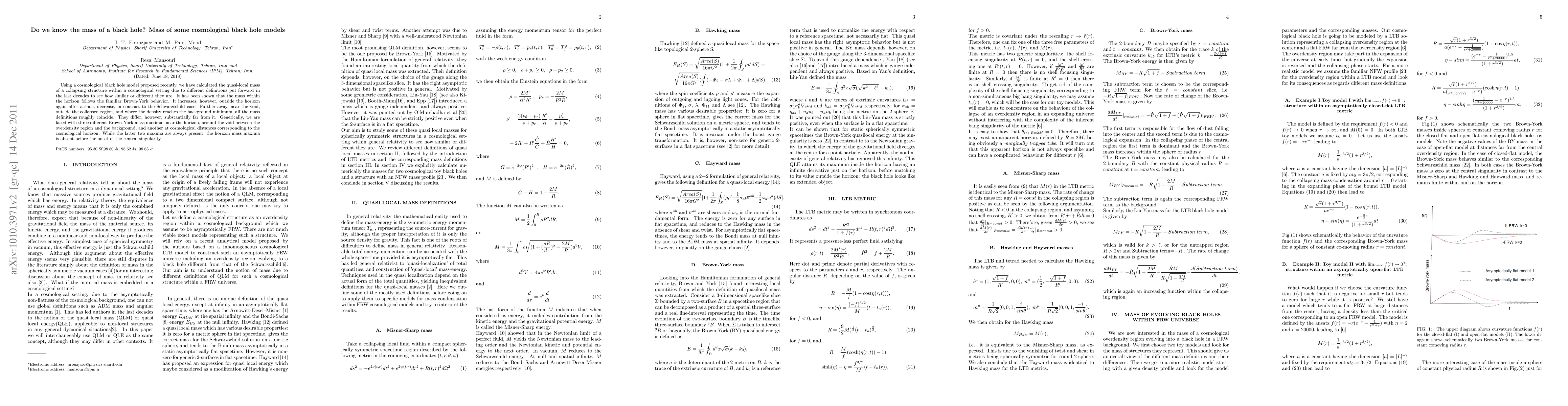 Researchers explored different mass definitions for black holes in a cosmological setting, finding that they converge near the void but diverge at greater distances, with varying maxima along their trajectories.