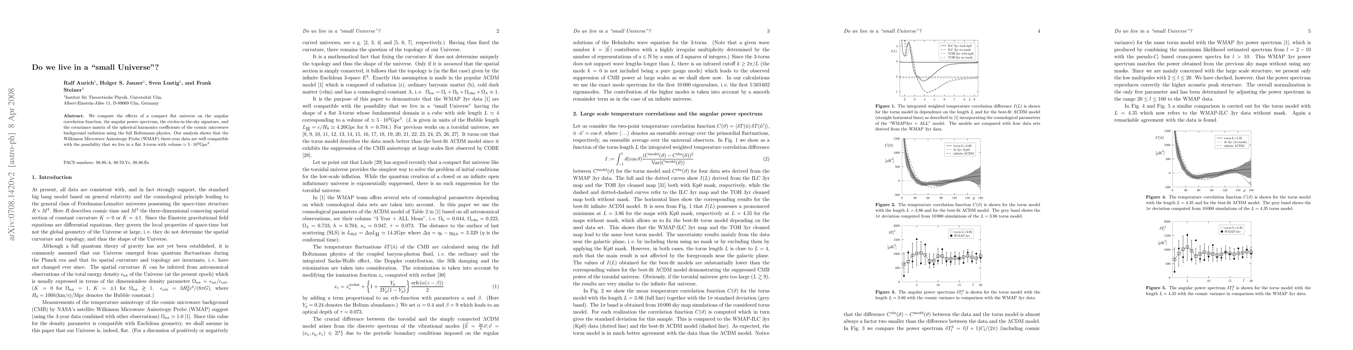 This paper investigates the implications of a compact flat universe on cosmic microwave background radiation, finding that WMAP data supports the possibility of a flat 3-torus universe with a volume of approximately 5x10^3 Gpc^3. The analysis uses full Boltzmann physics to examine various observational signatures.
