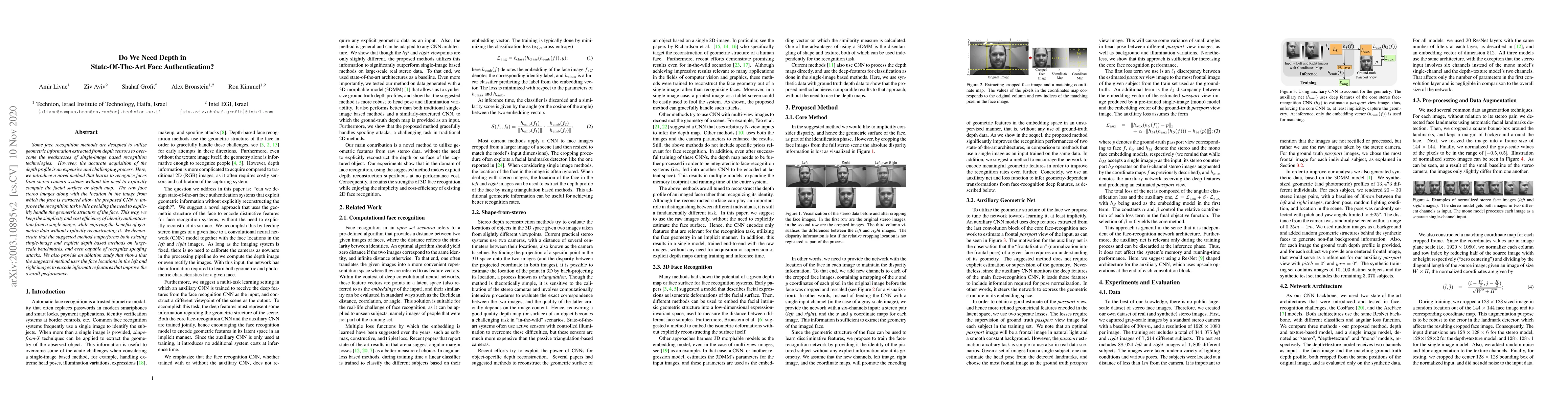 Some face recognition methods are designed to utilize geometric information extracted from depth sensors to overcome the weaknesses of single-image based recognition technologies. However, the accurate acquisition of the depth profile is an expensive and challenging process. Here, we introduce a novel method that learns to recognize faces from stereo camera systems without the need to explicitly compute the facial surface or depth map. The raw face stereo images along with the location in the image from which the face is extracted allow the proposed CNN to improve the recognition task while avoiding the need to explicitly handle the geometric structure of the face. This way, we keep the simplicity and cost efficiency of identity authentication from a single image, while enjoying the benefits of geometric data without explicitly reconstructing it. We demonstrate that the suggested method outperforms both existing single-image and explicit depth based methods on large-scale benchmarks, and even capable of recognize spoofing attacks. We also provide an ablation study that shows that the suggested method uses the face locations in the left and right images to encode informative features that improve the overall performance.