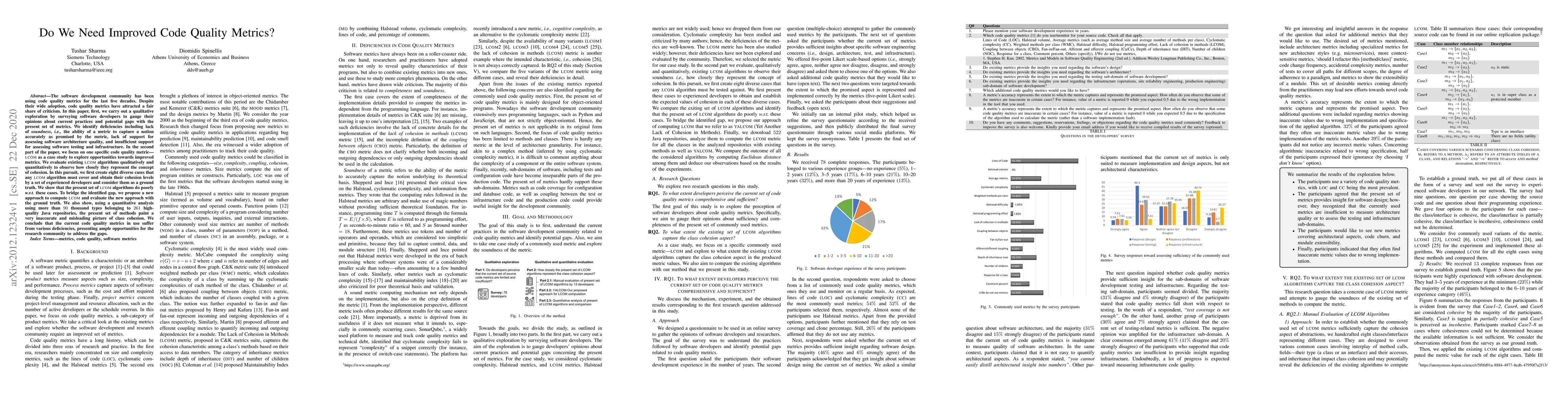 A study finds that existing code quality metrics like LCOM have limitations, leading to inaccurate assessments of class cohesion, and proposes a new approach to improve their accuracy.