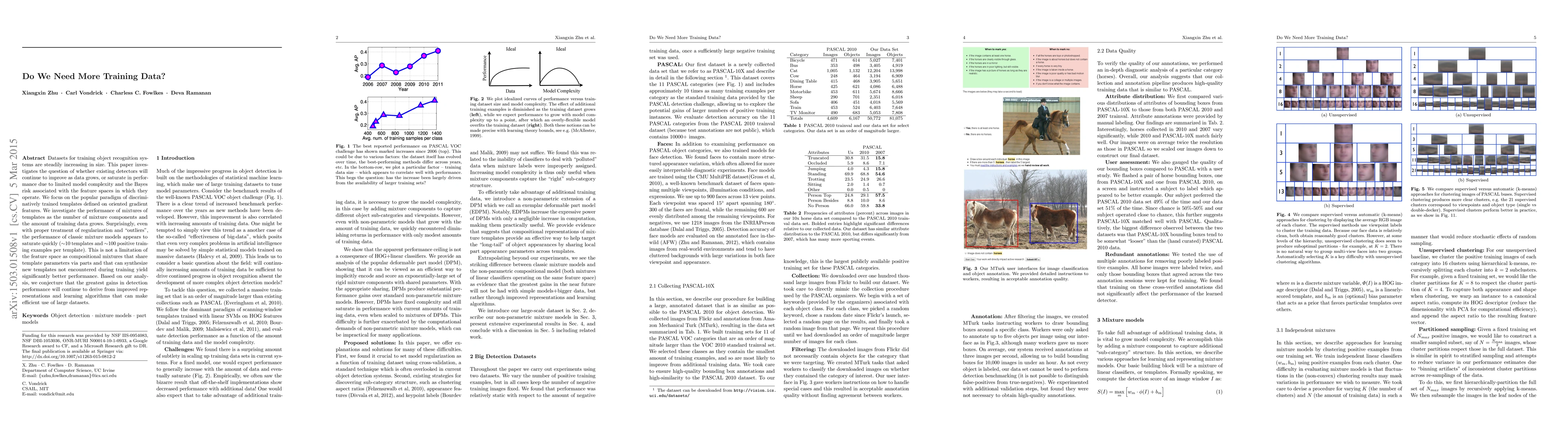 Datasets for training object recognition systems are steadily increasing in size. This paper investigates the question of whether existing detectors will continue to improve as data grows, or saturate in performance due to limited model complexity and the Bayes risk associated with the feature spaces in which they operate. We focus on the popular paradigm of discriminatively trained templates defined on oriented gradient features. We investigate the performance of mixtures of templates as the number of mixture components and the amount of training data grows. Surprisingly, even with proper treatment of regularization and "outliers", the performance of classic mixture models appears to saturate quickly ($\sim$10 templates and $\sim$100 positive training examples per template). This is not a limitation of the feature space as compositional mixtures that share template parameters via parts and that can synthesize new templates not encountered during training yield significantly better performance. Based on our analysis, we conjecture that the greatest gains in detection performance will continue to derive from improved representations and learning algorithms that can make efficient use of large datasets.