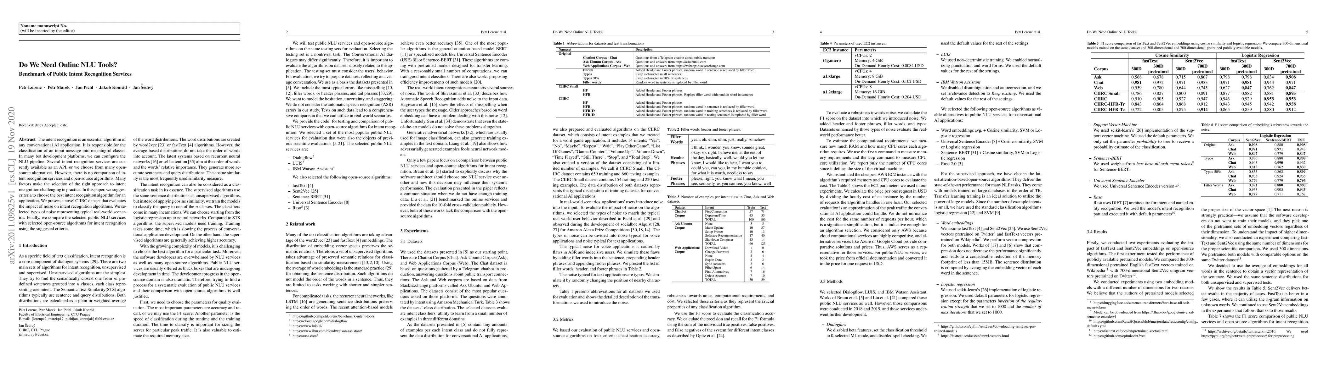 The intent recognition is an essential algorithm of any conversational AI application. It is responsible for the classification of an input message into meaningful classes. In many bot development platforms, we can configure the NLU pipeline. Several intent recognition services are currently available as an API, or we choose from many open-source alternatives. However, there is no comparison of intent recognition services and open-source algorithms. Many factors make the selection of the right approach to the intent recognition challenging in practice. In this paper, we suggest criteria to choose the best intent recognition algorithm for an application. We present a dataset for evaluation. Finally, we compare selected public NLU services with selected open-source algorithms for intent recognition.