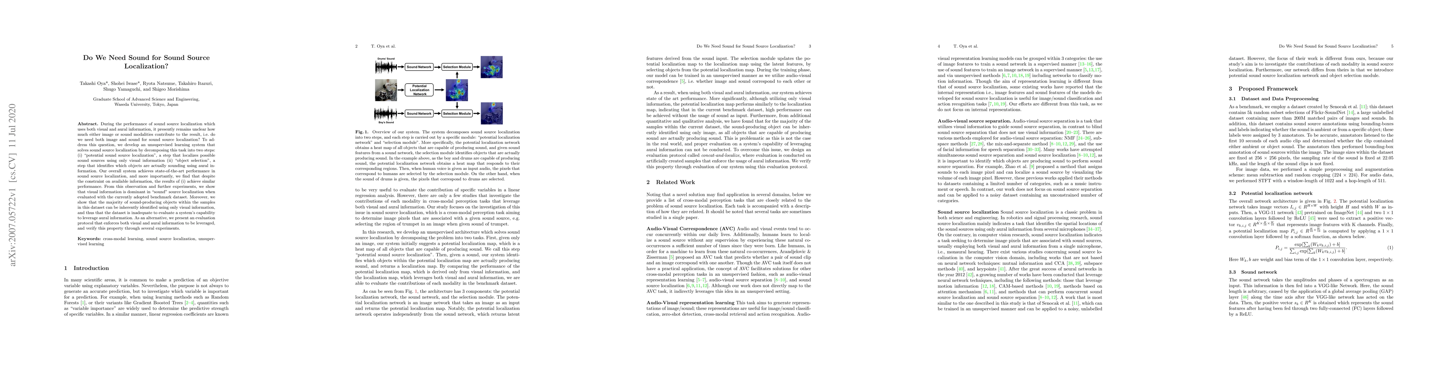 During the performance of sound source localization which uses both visual and aural information, it presently remains unclear how much either image or sound modalities contribute to the result, i.e. do we need both image and sound for sound source localization? To address this question, we develop an unsupervised learning system that solves sound source localization by decomposing this task into two steps: (i) "potential sound source localization", a step that localizes possible sound sources using only visual information (ii) "object selection", a step that identifies which objects are actually sounding using aural information. Our overall system achieves state-of-the-art performance in sound source localization, and more importantly, we find that despite the constraint on available information, the results of (i) achieve similar performance. From this observation and further experiments, we show that visual information is dominant in "sound" source localization when evaluated with the currently adopted benchmark dataset. Moreover, we show that the majority of sound-producing objects within the samples in this dataset can be inherently identified using only visual information, and thus that the dataset is inadequate to evaluate a system's capability to leverage aural information. As an alternative, we present an evaluation protocol that enforces both visual and aural information to be leveraged, and verify this property through several experiments.