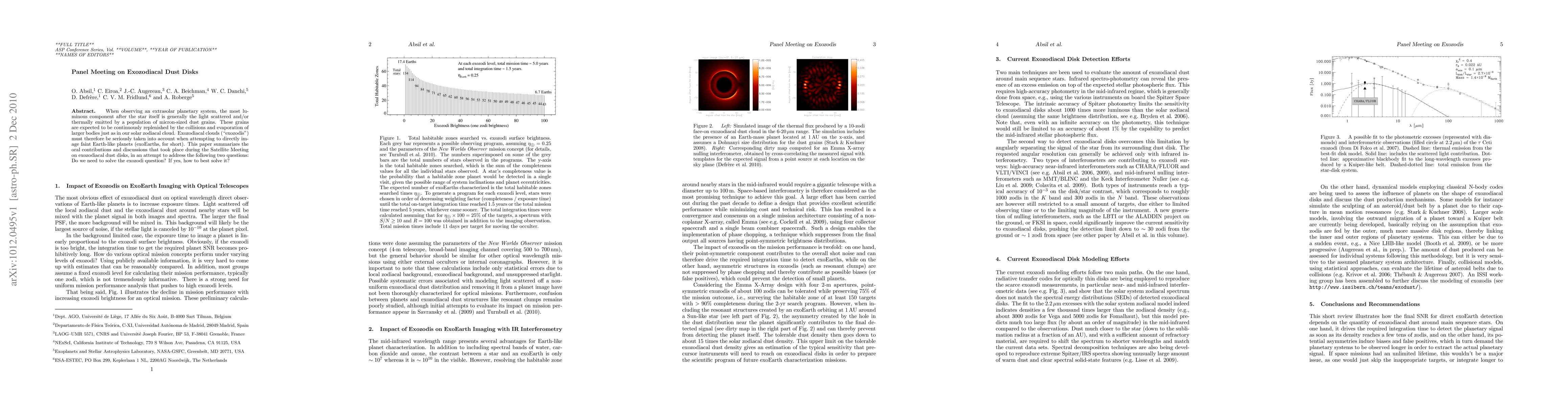 This paper, stemming from a satellite meeting on exozodiacal dust disks, concludes that solving the 'exozodi question' is crucial for directly imaging faint Earth-like planets. It emphasizes the need for advanced methods to mitigate the luminosity of micron-sized dust grains around stars, which obscure exoEarth detection.