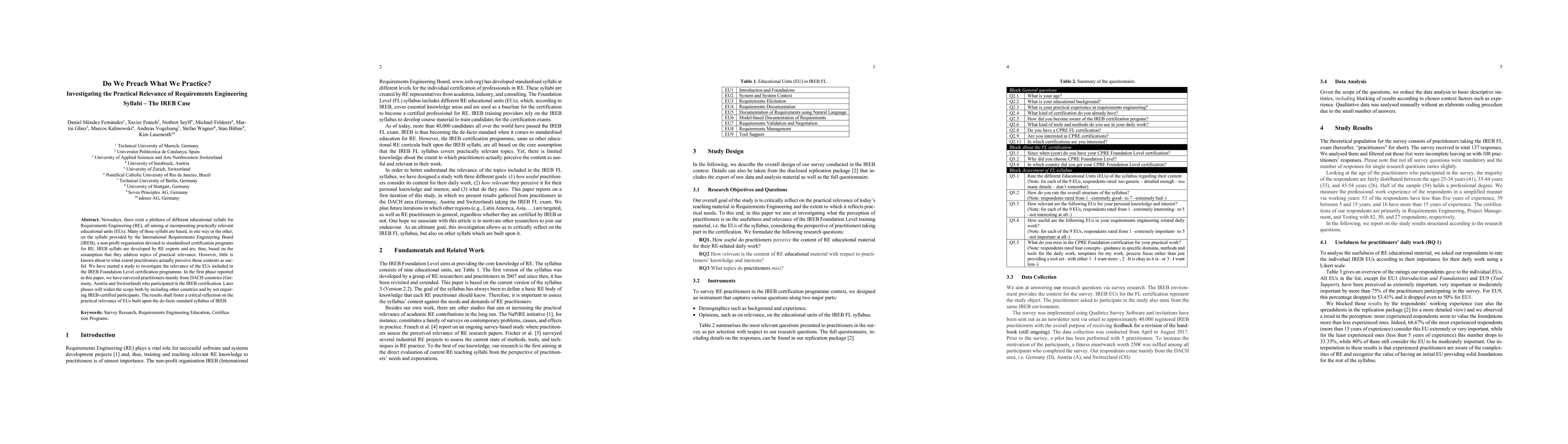 Nowadays, there exist a plethora of different educational syllabi for Requirements Engineering (RE), all aiming at incorporating practically relevant educational units (EUs). Many of these syllabi are based, in one way or the other, on the syllabi provided by the International Requirements Engineering Board (IREB), a non-profit organisation devoted to standardised certification programs for RE. IREB syllabi are developed by RE experts and are, thus, based on the assumption that they address topics of practical relevance. However, little is known about to what extent practitioners actually perceive those contents as useful. We have started a study to investigate the relevance of the EUs included in the IREB Foundation Level certification programme. In a first phase reported in this paper, we have surveyed practitioners mainly from DACH countries (Germany, Austria and Switzerland) participating in the IREB certification. Later phases will widen the scope both by including other countries and by not requiring IREB-certified participants. The results shall foster a critical reflection on the practical relevance of EUs built upon the de-facto standard syllabus of IREB.