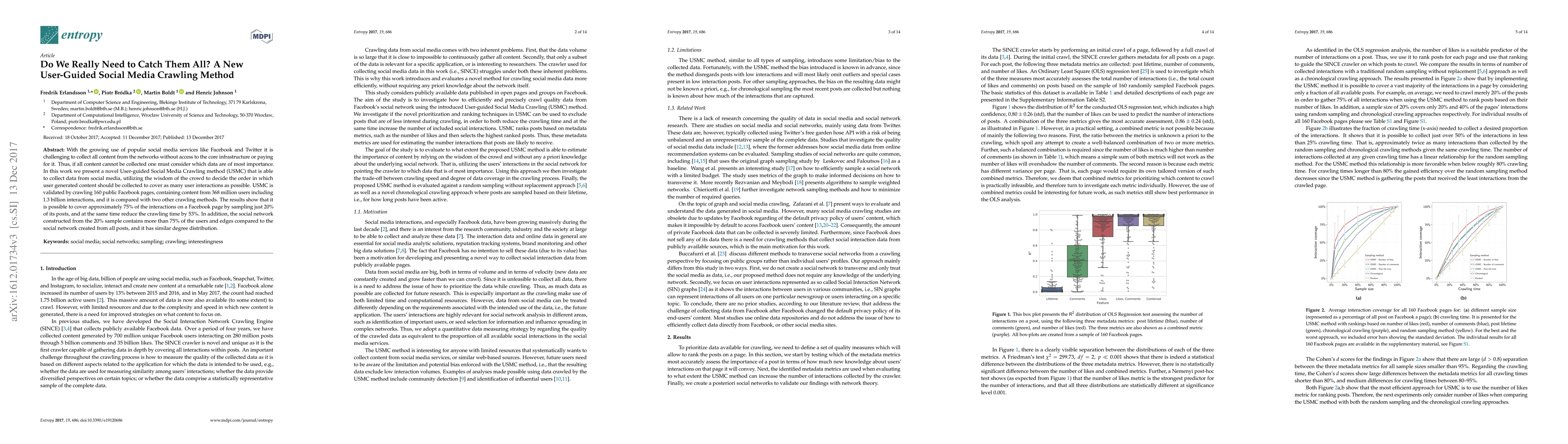With the growing use of popular social media services like Facebook and Twitter it is challenging to collect all content from the networks without access to the core infrastructure or paying for it. Thus, if all content cannot be collected one must consider which data are of most importance. In this work we present a novel User-guided Social Media Crawling method (USMC) that is able to collect data from social media, utilizing the wisdom of the crowd to decide the order in which user generated content should be collected to cover as many user interactions as possible. USMC is validated by crawling 160 public Facebook pages, containing content from 368 million users including 1.3 billion interactions, and it is compared with two other crawling methods. The results show that it is possible to cover approximately 75% of the interactions on a Facebook page by sampling just 20% of its posts, and at the same time reduce the crawling time by 53%. In addition, the social network constructed from the 20% sample contains more than 75% of the users and edges compared to the social network created from all posts, and it has similar degree distribution.