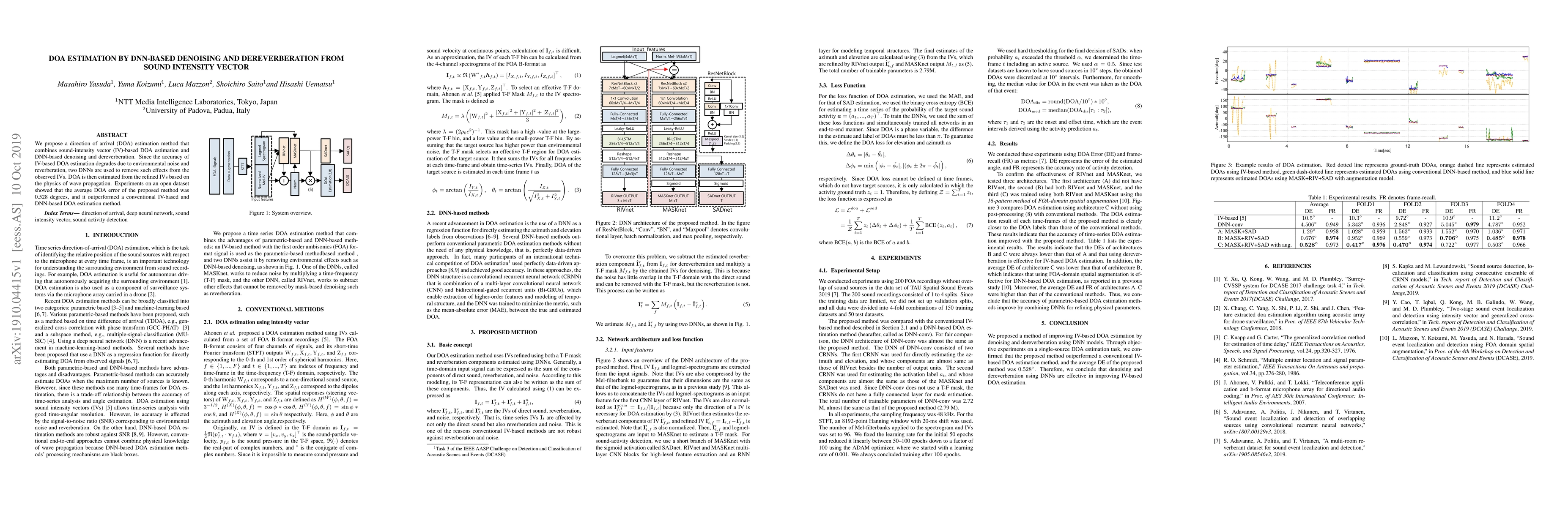 This paper proposes a method for direction of arrival (DOA) estimation using sound-intensity vector (IV) data, enhanced by DNN-based denoising and dereverberation to improve accuracy. Experiments demonstrated an average DOA error of 0.528 degrees, outperforming conventional methods.