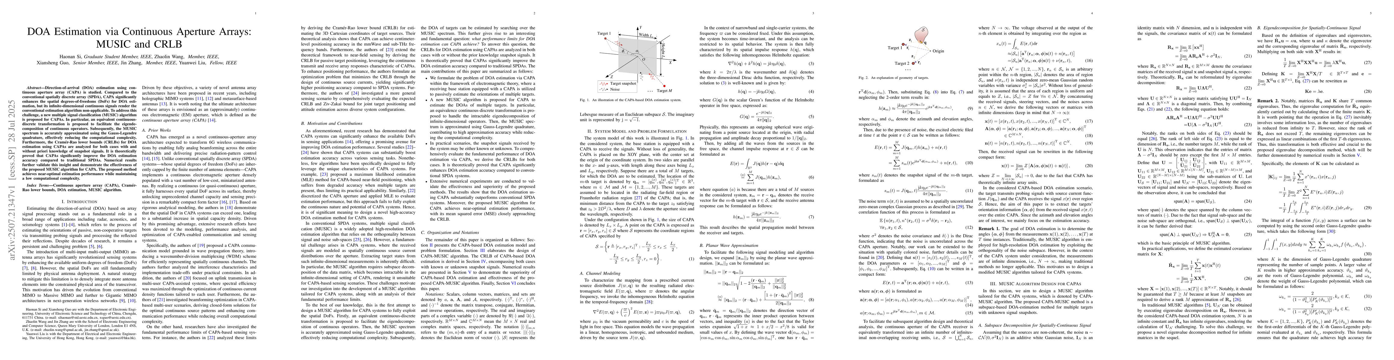 This research introduces a new MUSIC algorithm for direction-of-arrival (DOA) estimation using continuous aperture arrays (CAPAs), overcoming the limitations of conventional methods. The proposed method, involving an equivalent continuous-discrete transformation and Gauss-Legendre quadrature, significantly improves estimation accuracy and reduces complexity, proving theoretically and numerically that CAPAs outperform traditional spatially discrete arrays (SPDAs) in DOA estimation.