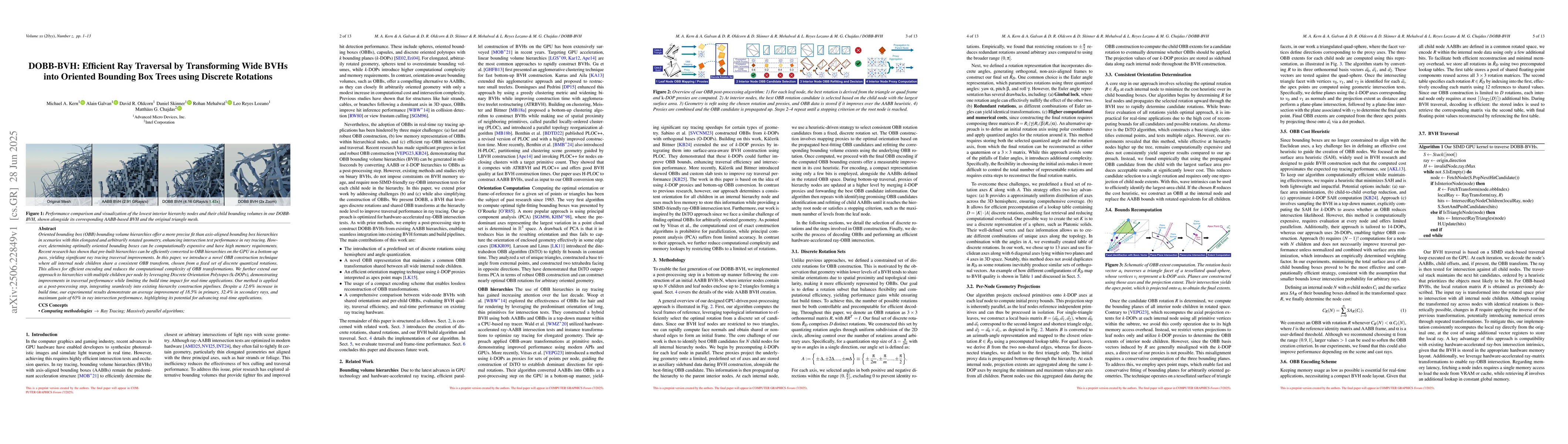 The paper presents an efficient method for transforming wide AABB BVHs into OBB trees using discrete rotations, improving ray traversal performance in real-time applications.