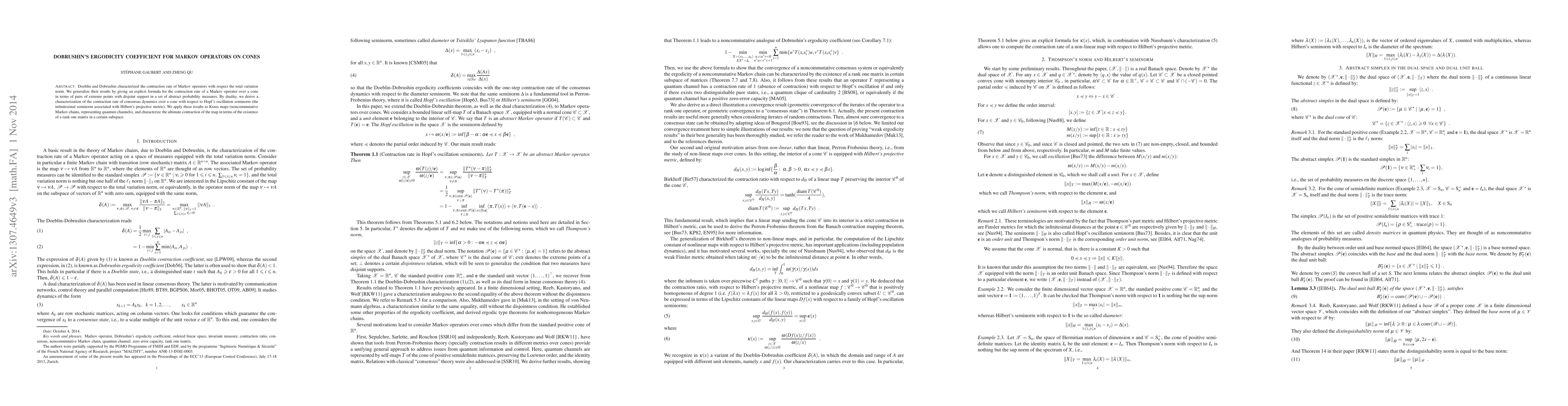 This paper characterizes the contraction ratio of bounded linear maps in Banach space using Hopf's oscillation seminorm, extending Dobrushin's ergodicity coefficient to abstract Markov operators on cones. It provides a noncommutative version of Dobrushin's coefficient for quantum channels and establishes its role in the convergence of noncommutative consensus systems.