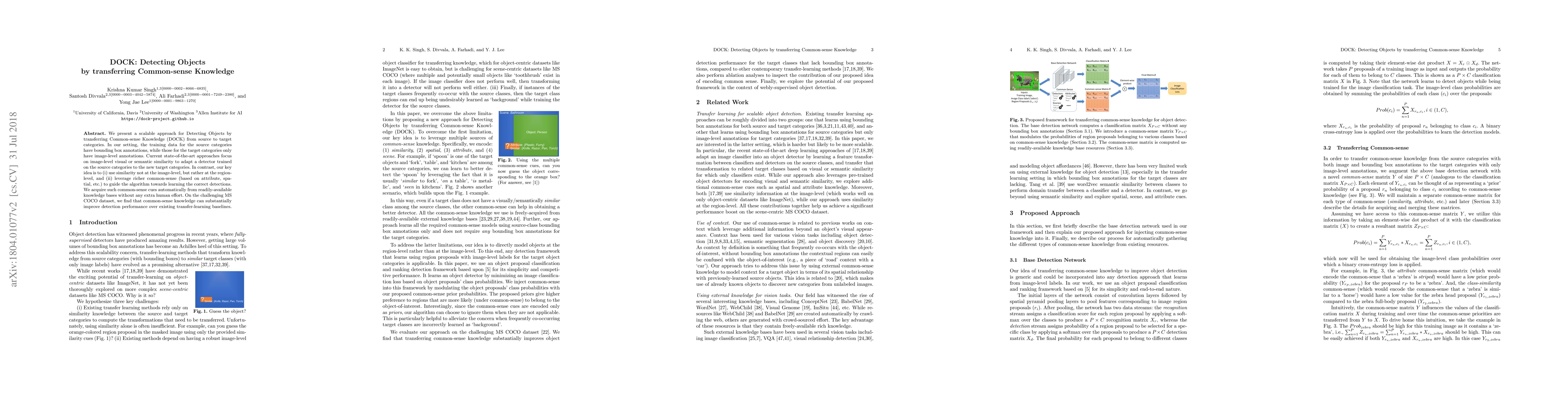 The research introduces DOCK, an approach that transfers common-sense knowledge from source categories with bounding box annotations to target categories with only image-level annotations for object detection. It leverages region-level similarity and rich common-sense cues (attribute, spatial, etc.) acquired automatically from knowledge bases.