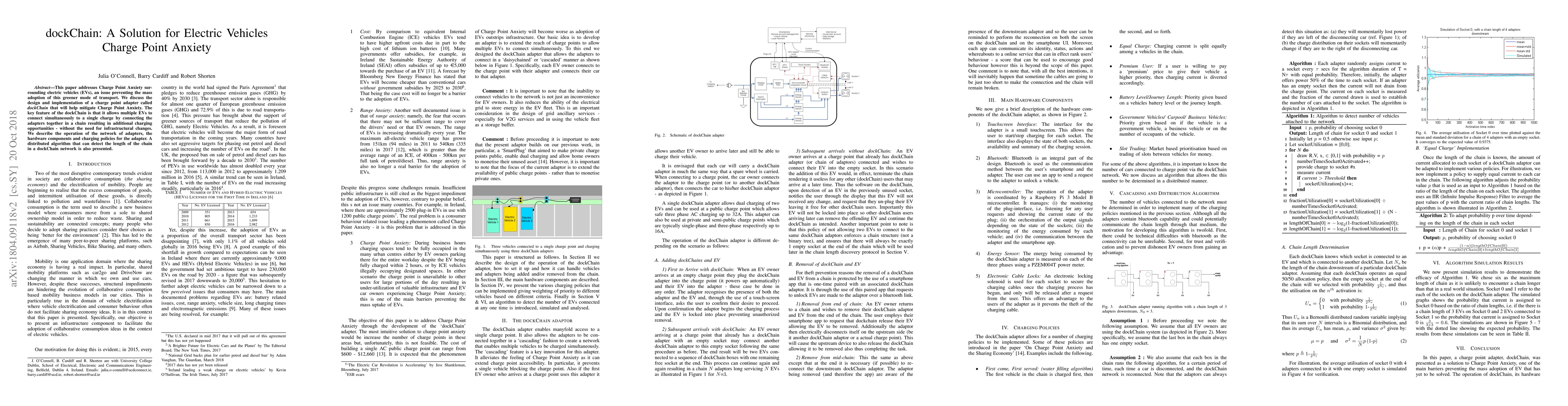 This paper introduces dockChain, an innovative adapter solution to alleviate Charge Point Anxiety for electric vehicles by enabling multiple EVs to charge simultaneously from a single point without requiring infrastructure changes. The dockChain network features a distributed algorithm to detect chain length and optimizes charging policies.