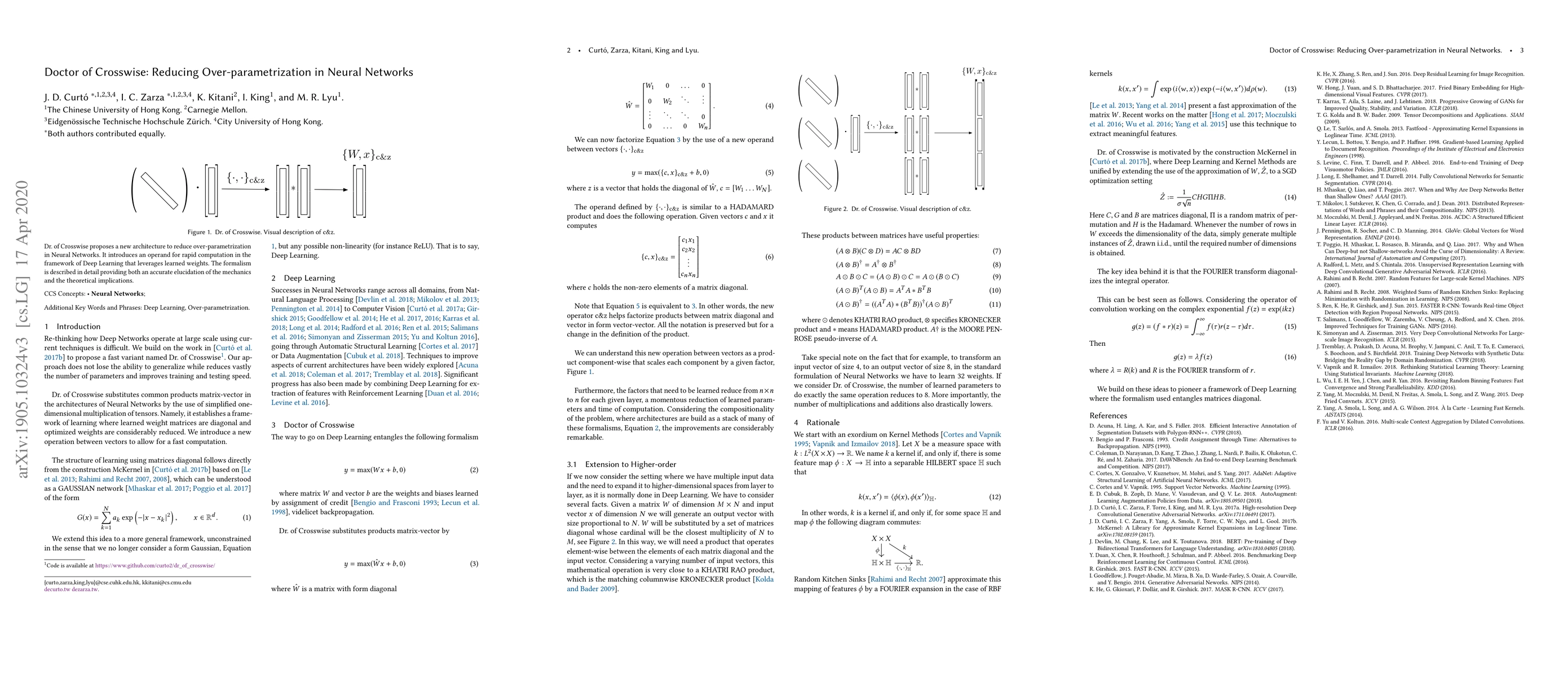 Dr. of Crosswise introduces a novel neural network architecture to minimize over-parametrization, utilizing a new operand for efficient computation that leverages learned weights. The paper thoroughly explains the mechanics and theoretical implications of this innovative approach.