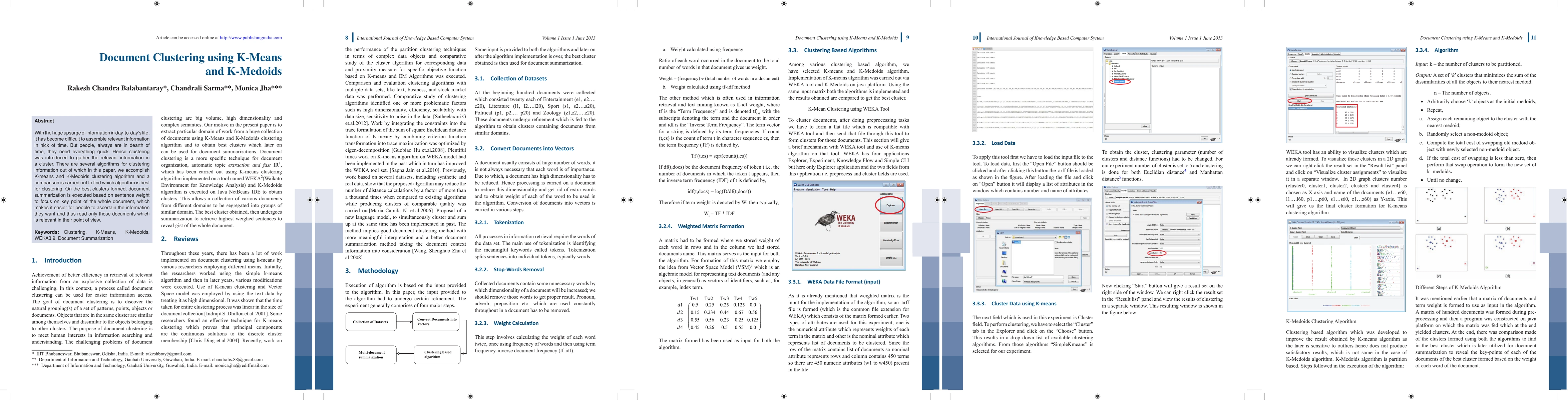 This paper explores K-means and K-Medoids clustering algorithms to efficiently group large volumes of information. It compares both algorithms to determine the most effective one for clustering, followed by document summarization based on sentence weight to highlight key information.