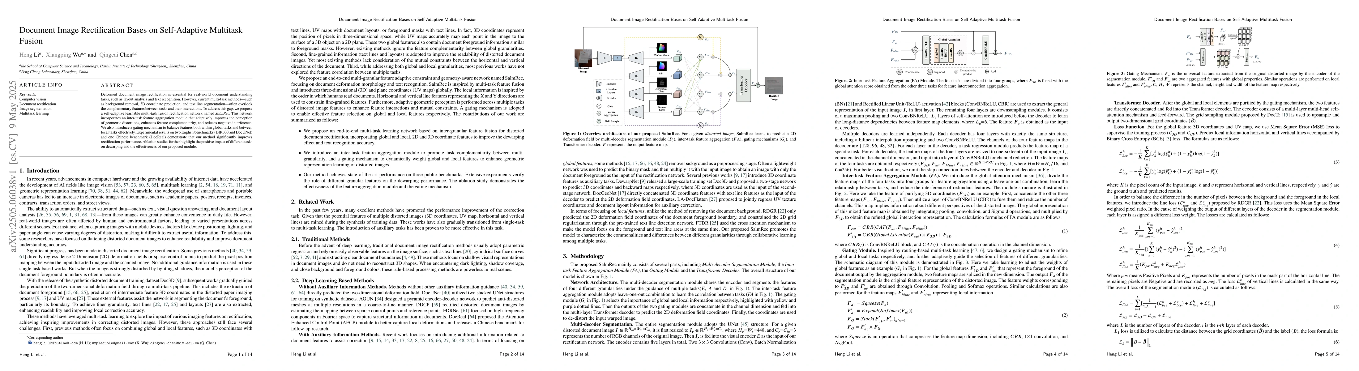 This work stands out by focusing on adaptive feature aggregation and balancing mechanisms to enhance complementarity and reduce negative interference between tasks in document image rectification.