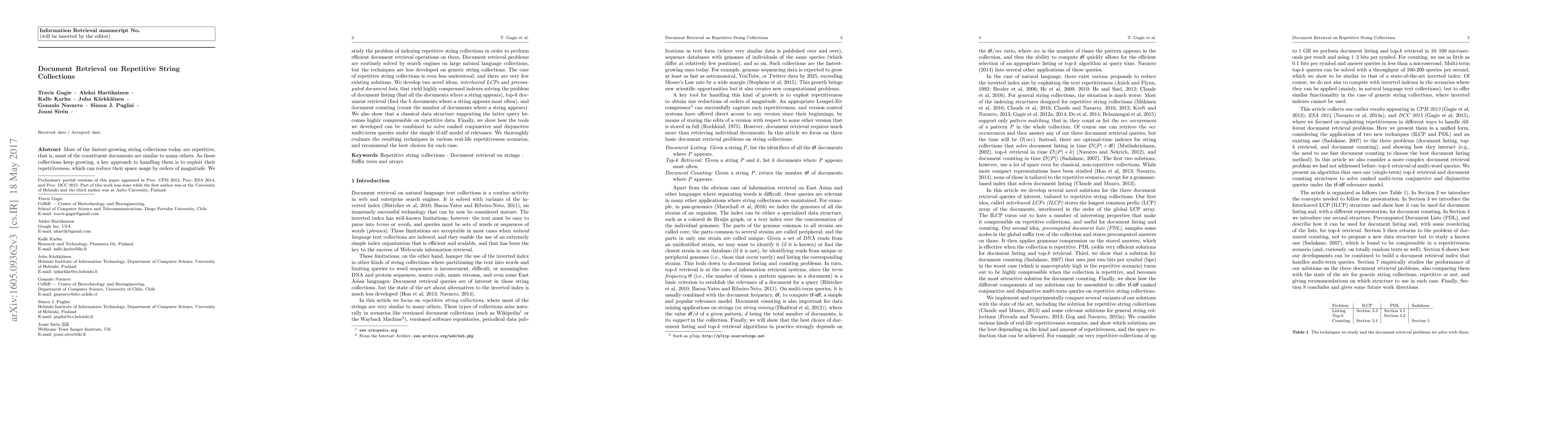 This paper proposes novel indexing techniques for efficiently retrieving documents in repetitive string collections, focusing on highly compressed indexes using interleaved LCPs and precomputed document lists. The developed methods address document listing, top-$k$ retrieval, and document counting, and are evaluated across various real-life scenarios to recommend optimal solutions.