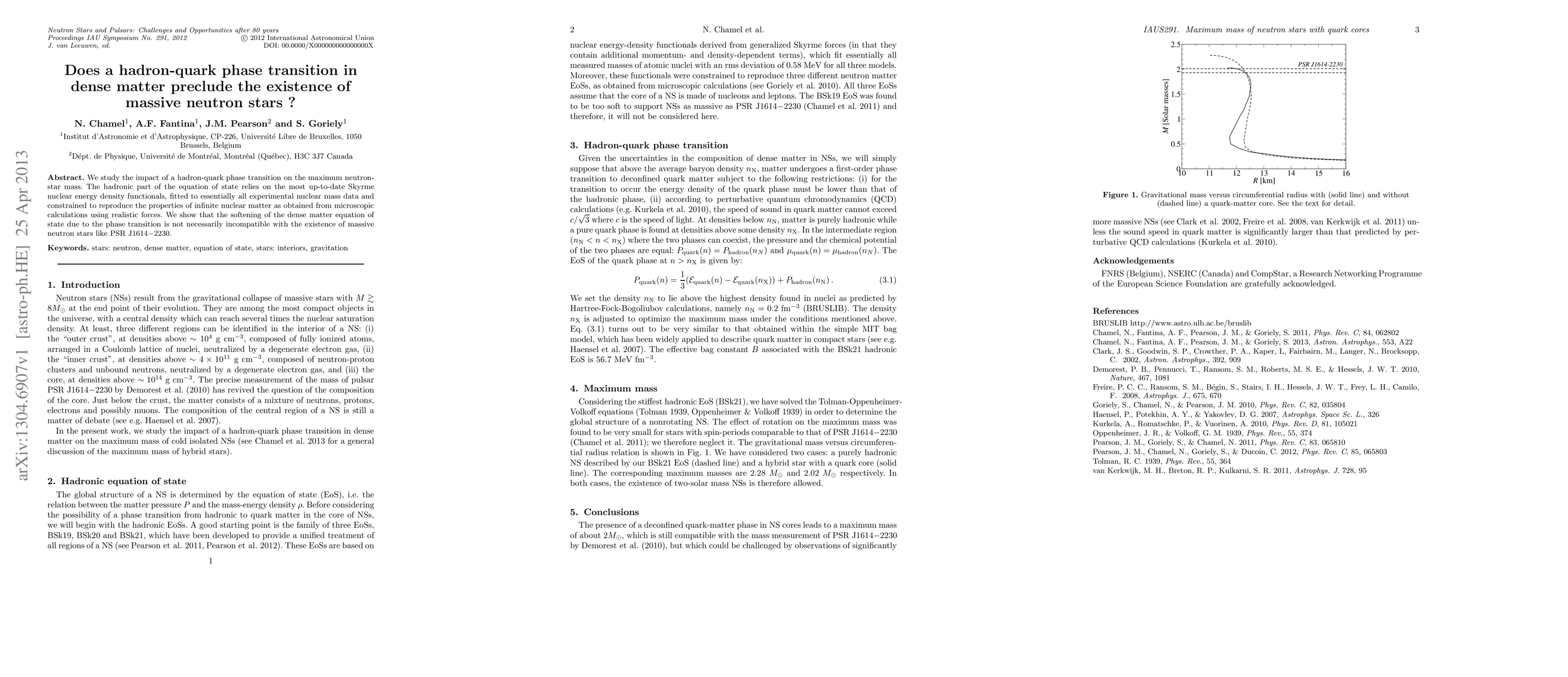 This paper investigates whether a hadron-quark phase transition in dense matter could prevent the existence of massive neutron stars. It concludes that such a transition does not necessarily preclude the existence of neutron stars with high masses, like PSR J1614-2230.