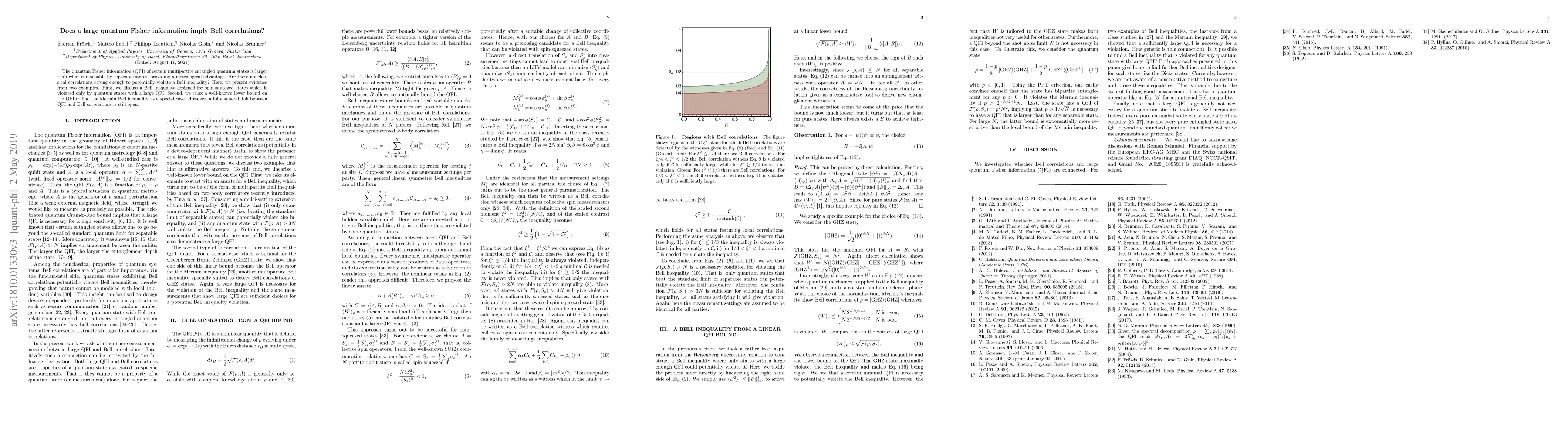 This paper investigates whether a large quantum Fisher information (QFI) implies Bell correlations, finding evidence in two examples: spin-squeezed states violating a specific Bell inequality and the Mermin Bell inequality emerging from a relaxed QFI bound. However, a general connection between QFI and Bell correlations remains unresolved.