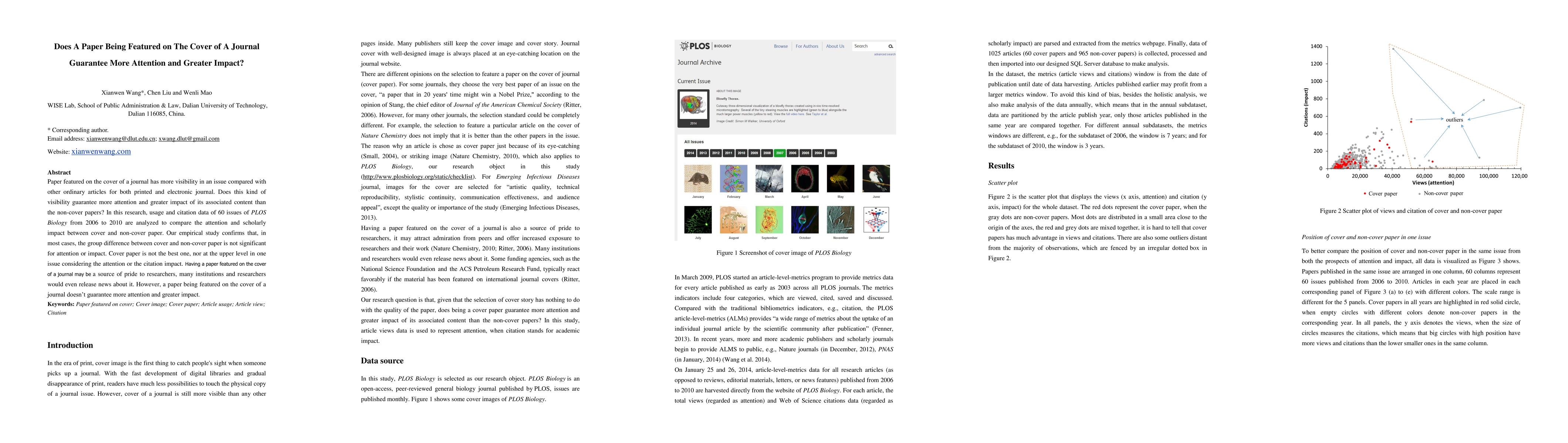 This study analyzes usage and citation data from PLOS Biology to compare the attention and impact of cover versus non-cover papers. The findings suggest that cover papers do not significantly differ in attention or impact from non-cover papers, indicating that cover feature does not guarantee greater scholarly impact.