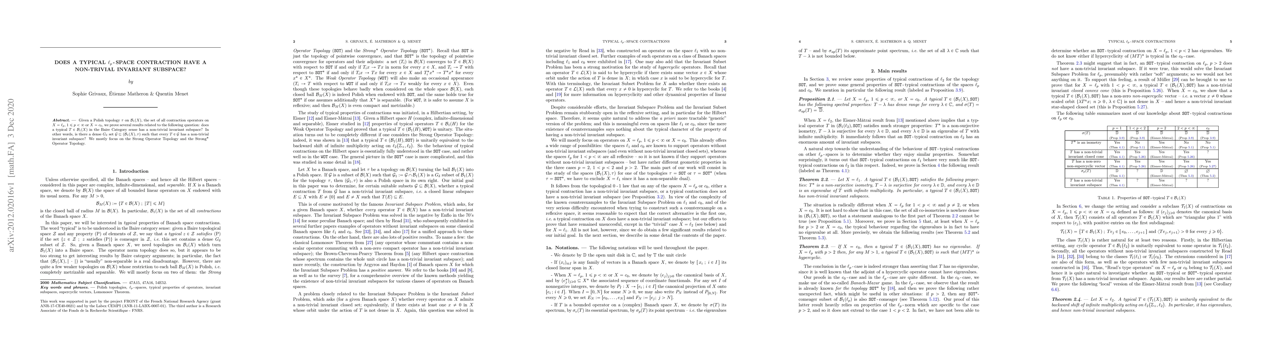 Given a Polish topology $\tau$ on ${{\mathcal{B}}_{1}(X)}$, the set of all contraction operators on $X=\ell_p$, $1\le p<\infty$ or $X=c_0$, we prove several results related to the following question: does a typical $T\in {{\mathcal{B}}_{1}(X)}$ in the Baire Category sense has a non-trivial invariant subspace? In other words, is there a dense $G_\delta$ set $\mathcal G\subseteq ({{\mathcal{B}}_{1}(X)},\tau)$ such that every $T\in\mathcal G$ has a non-trivial invariant subspace? We mostly focus on the Strong Operator Topology and the Strong$^*$ Operator Topology.