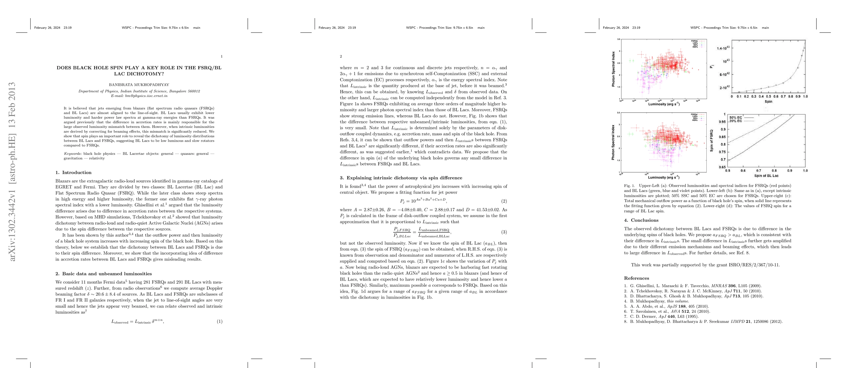 It is believed that jets emerging from blazars (Flat Spectrum Radio Quasars (FSRQs) and BL Lacs) are almost aligned to the line-of-sight. BL Lacs usually exhibit lower luminosity and harder power law spectra at gamma-ray energies than FSRQs. It was argued previously that the difference in accretion rates is mainly responsible for the large observed luminosity mismatch between them. However, when intrinsic luminosities are derived by correcting for beaming effects, this mismatch is significantly reduced. We show that spin plays an important role to reveal the dichotomy of luminosity distributions between BL Lacs and FSRQs, suggesting BL Lacs to be low luminous and slow rotators compared to FSRQs.