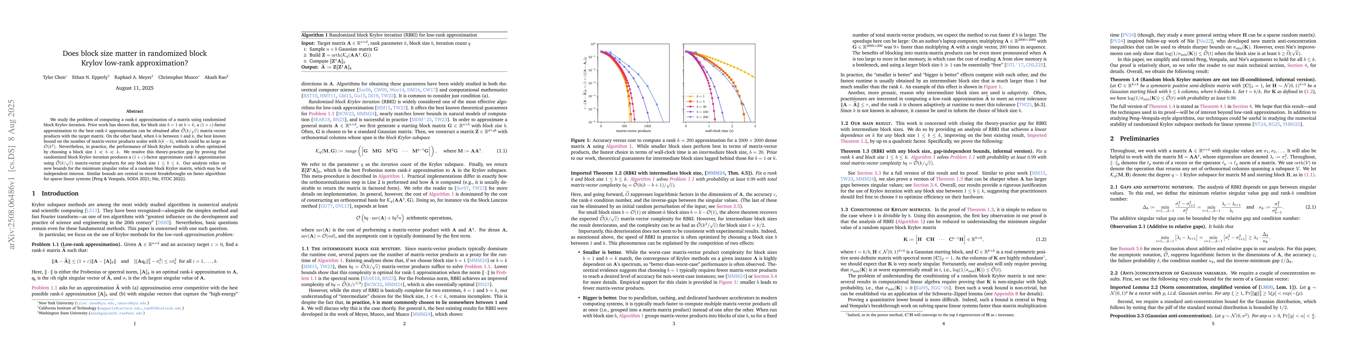 We study the problem of computing a rank-$k$ approximation of a matrix using randomized block Krylov iteration. Prior work has shown that, for block size $b = 1$ or $b = k$, a $(1 + \varepsilon)$-factor approximation to the best rank-$k$ approximation can be obtained after $\tilde O(k/\sqrt{\varepsilon})$ matrix-vector products with the target matrix. On the other hand, when $b$ is between $1$ and $k$, the best known bound on the number of matrix-vector products scales with $b(k-b)$, which could be as large as $O(k^2)$. Nevertheless, in practice, the performance of block Krylov methods is often optimized by choosing a block size $1 \ll b \ll k$. We resolve this theory-practice gap by proving that randomized block Krylov iteration produces a $(1 + \varepsilon)$-factor approximate rank-$k$ approximation using $\tilde O(k/\sqrt{\varepsilon})$ matrix-vector products for any block size $1\le b\le k$. Our analysis relies on new bounds for the minimum singular value of a random block Krylov matrix, which may be of independent interest. Similar bounds are central to recent breakthroughs on faster algorithms for sparse linear systems [Peng & Vempala, SODA 2021; Nie, STOC 2022].