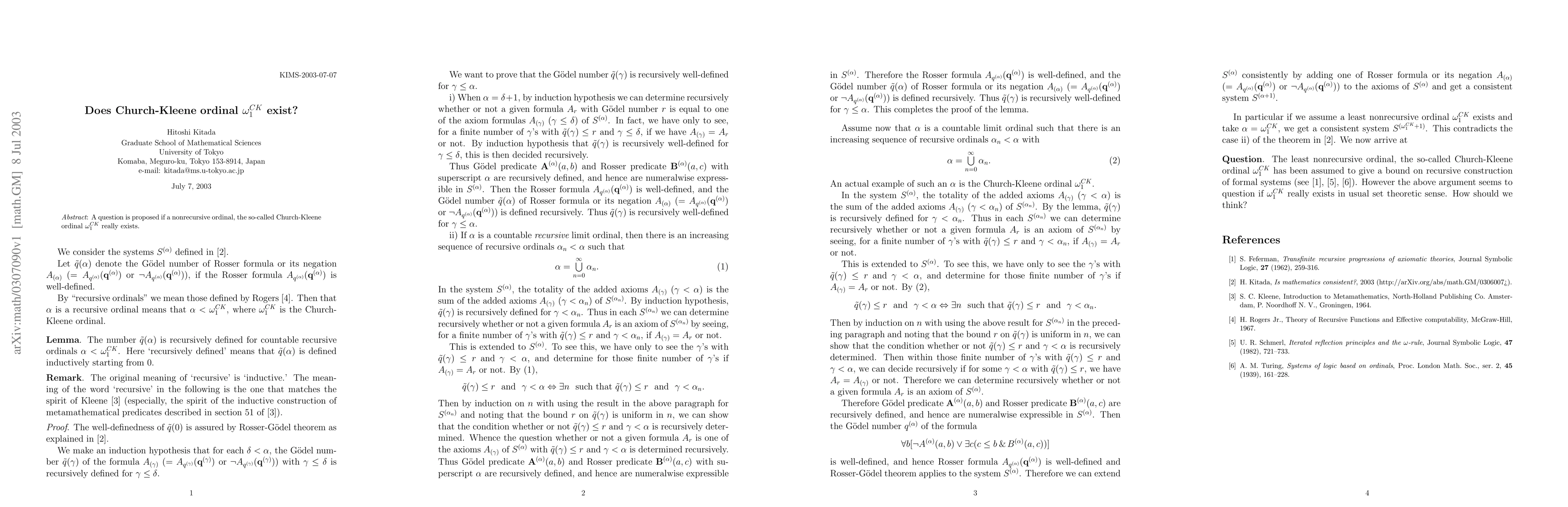 A question is proposed if a nonrecursive ordinal, the so-called Church-Kleene ordinal $\omega_1^{CK}$ really exists.