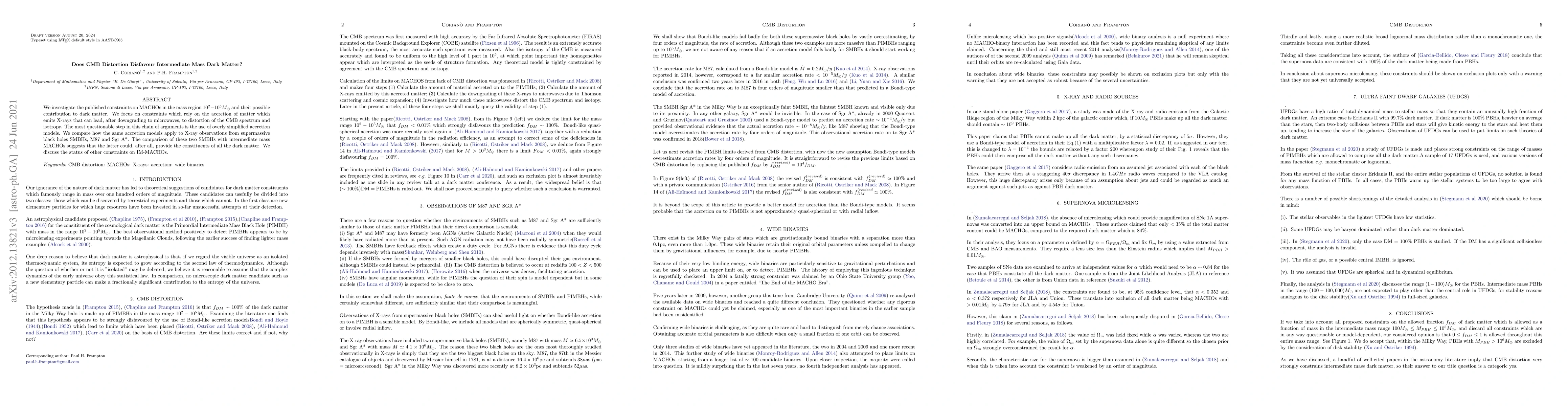 A study challenges the idea that intermediate mass dark matter (MACHOs) can be ruled out based on CMB distortion, suggesting they could be a viable contributor to dark matter instead.