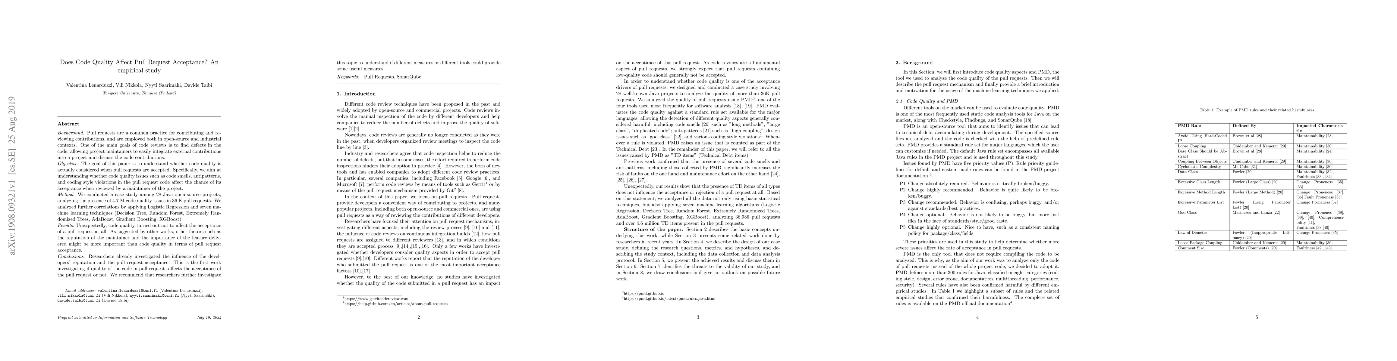 This paper investigates whether code quality impacts pull request acceptance in 28 Java open-source projects, analyzing 4.7 million code quality issues across 36,000 pull requests. Contrary to expectations, code quality did not affect acceptance rates, suggesting that factors like maintainer reputation and feature importance play a more significant role.